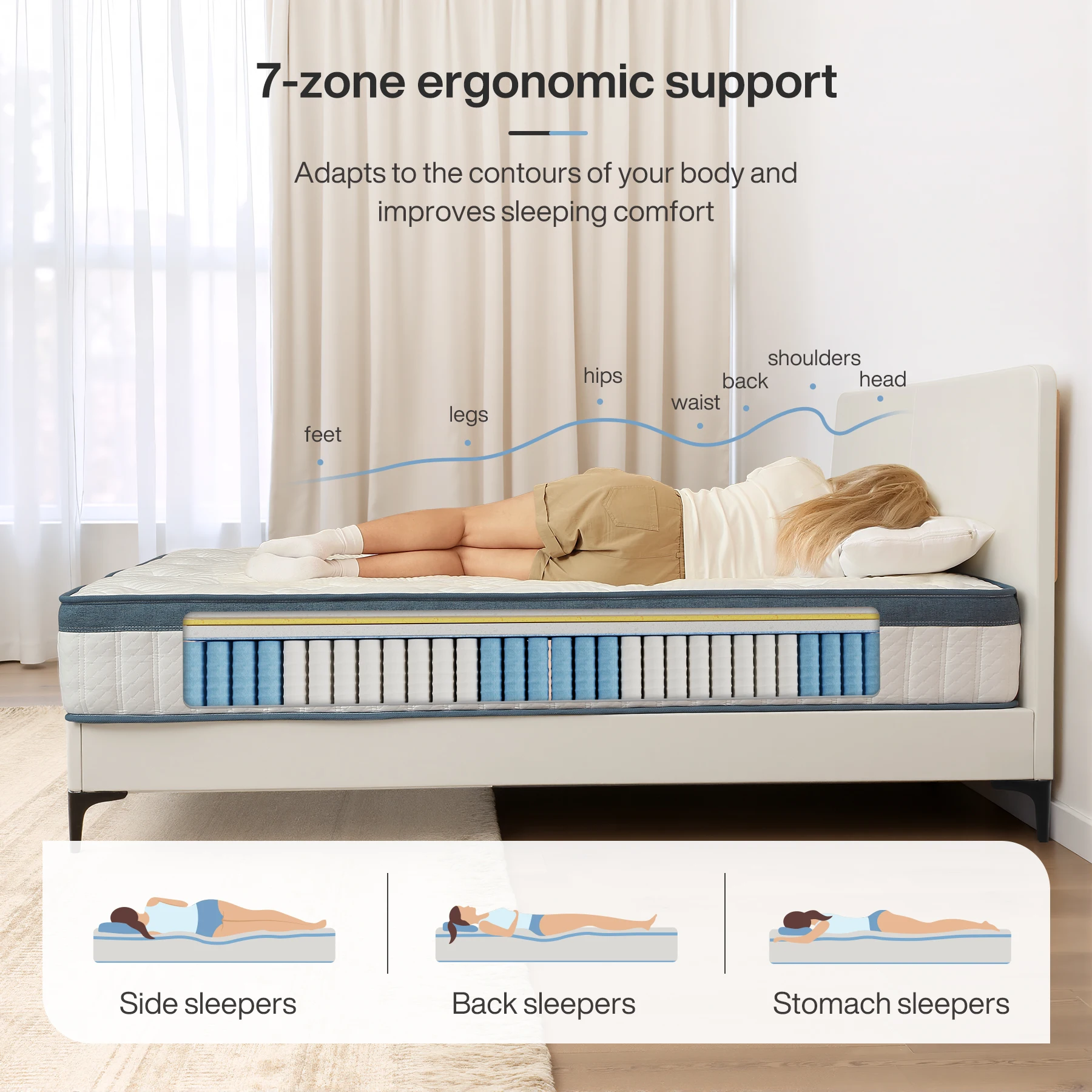 “25 cm thick, scientifically tested mattress to protect the spine – This ergonomic mattress, with a luxurious 25 cm thickness and a scientifically balanced number of layers, provides even, stable all-around support. It effectively distributes body pressure, adapts to the natural curvature of the spine, significantly reduces pressure in the lumbar region, and ensures a personalized, comfortable sleep experience.