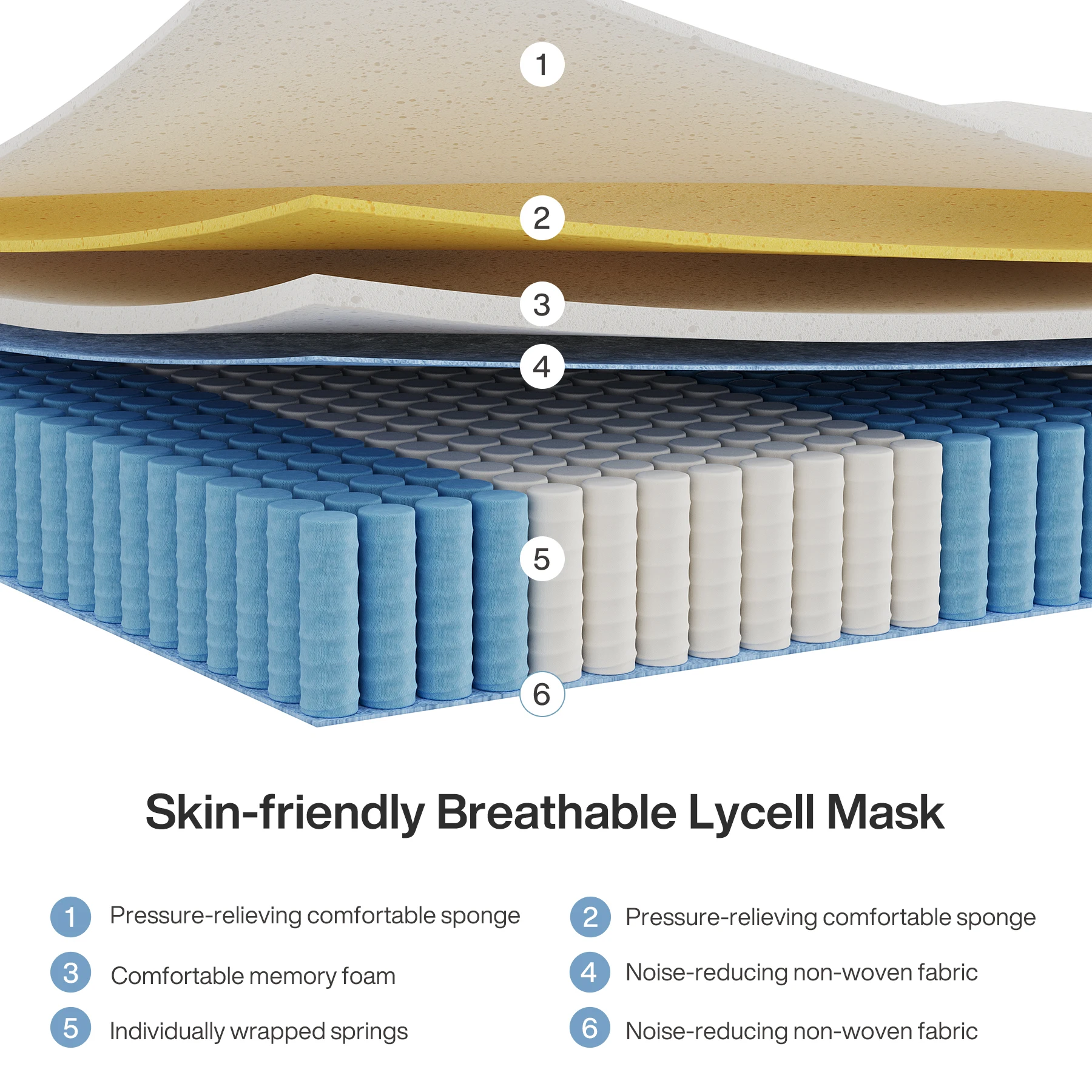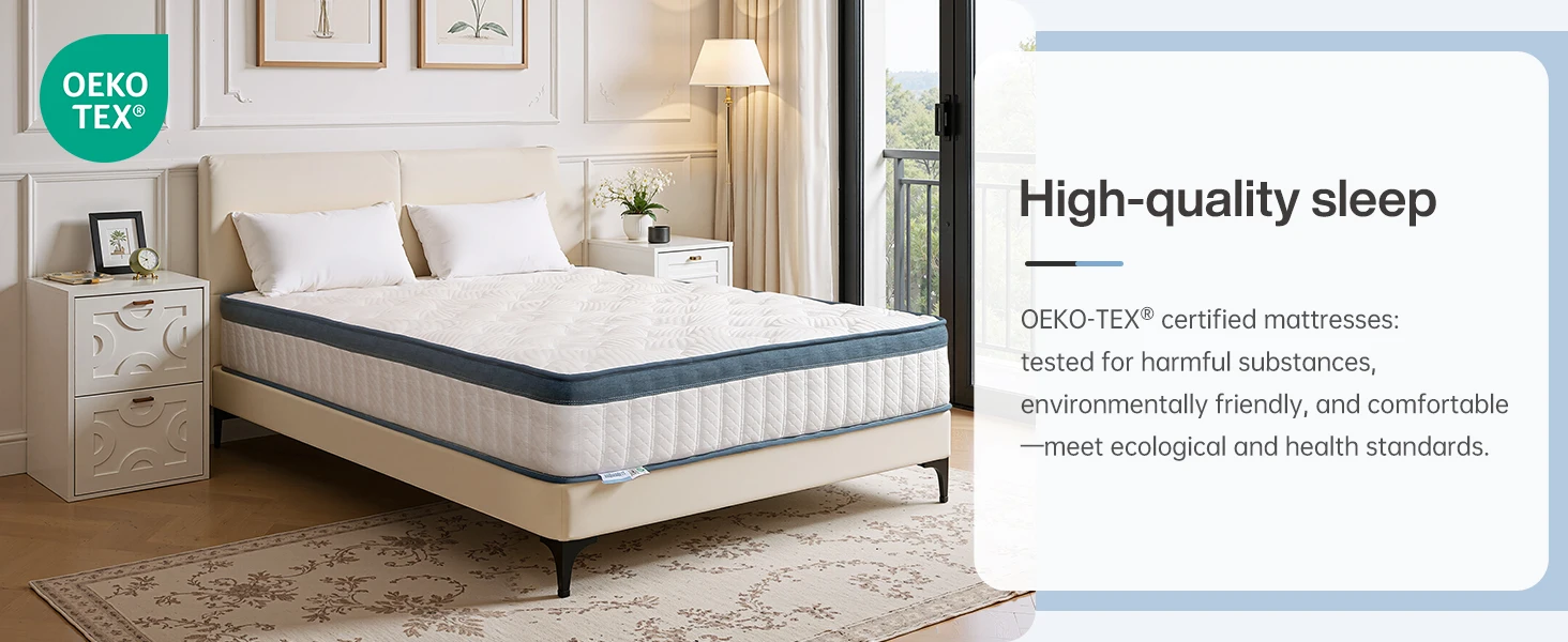 Breathable Tencel Lyocell cover for safety – A luxurious hotel-like sleeping experience! Our innerspring mattress features a skin-friendly Lyocell cover with micro-perforations that effectively wick away moisture, making it ideal for allergy sufferers and those prone to sweating. Thanks to OEKO-TEX certification, it is completely safe for children and pregnant women.