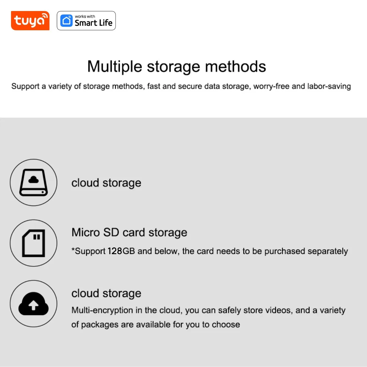 ● TF card storage can record even without network, cloud storage makes recording more secure