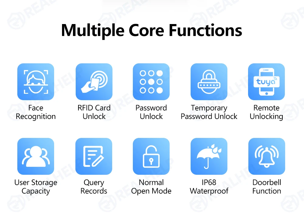 ️Waterproof IP68 Grade,Relay output,exit button,alarm,door contact,Wiegand 26/34 input+Wiegand output.【Multiple Users, Multiple Access Ways】Support 2000 users capacity. Multiple unlocking ways to open the door read card or password or TUYA APP access. Set the public password or private password and changed the password. Add and delete users as your requirement.