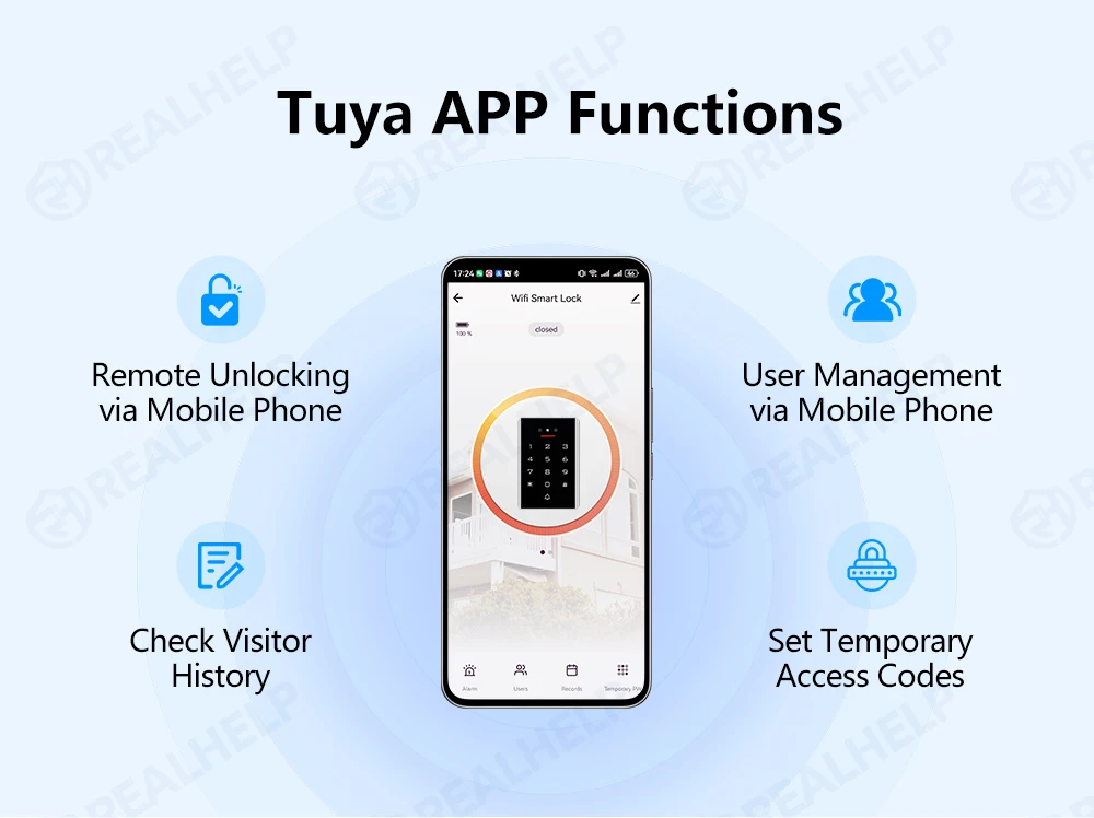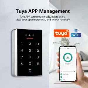 ️This Access control keypad is High quality Metal case,TouchKey Backlight Access Controller,Capacitive Door Bell Function,9~16V DC.【Wireless Smartphone App Operation】Wireless integrated access control keypad allows you to control the keypad from your smartphone, anytime and anywhere, share, modify and delete Passwords/ID cards. View door opening records. free TUYA App.You can download the iOS version in App Store and the Android version in Google Play.