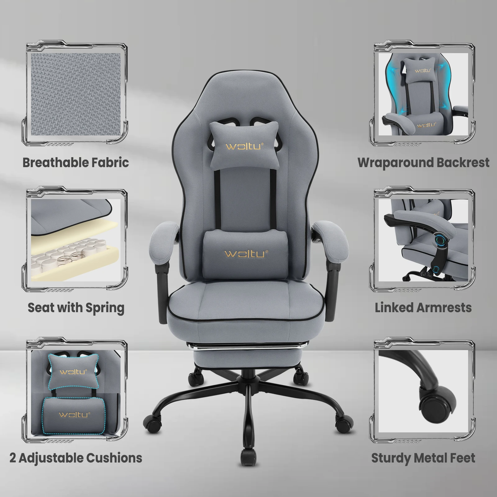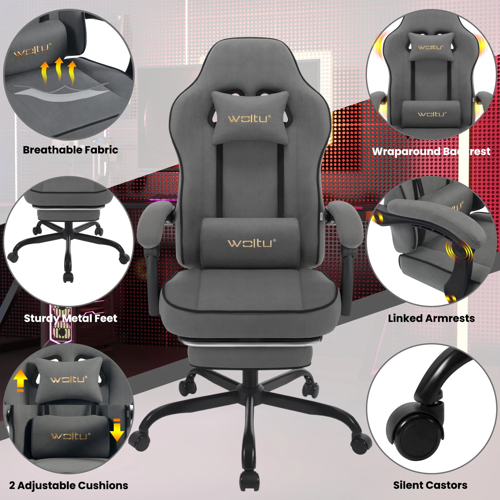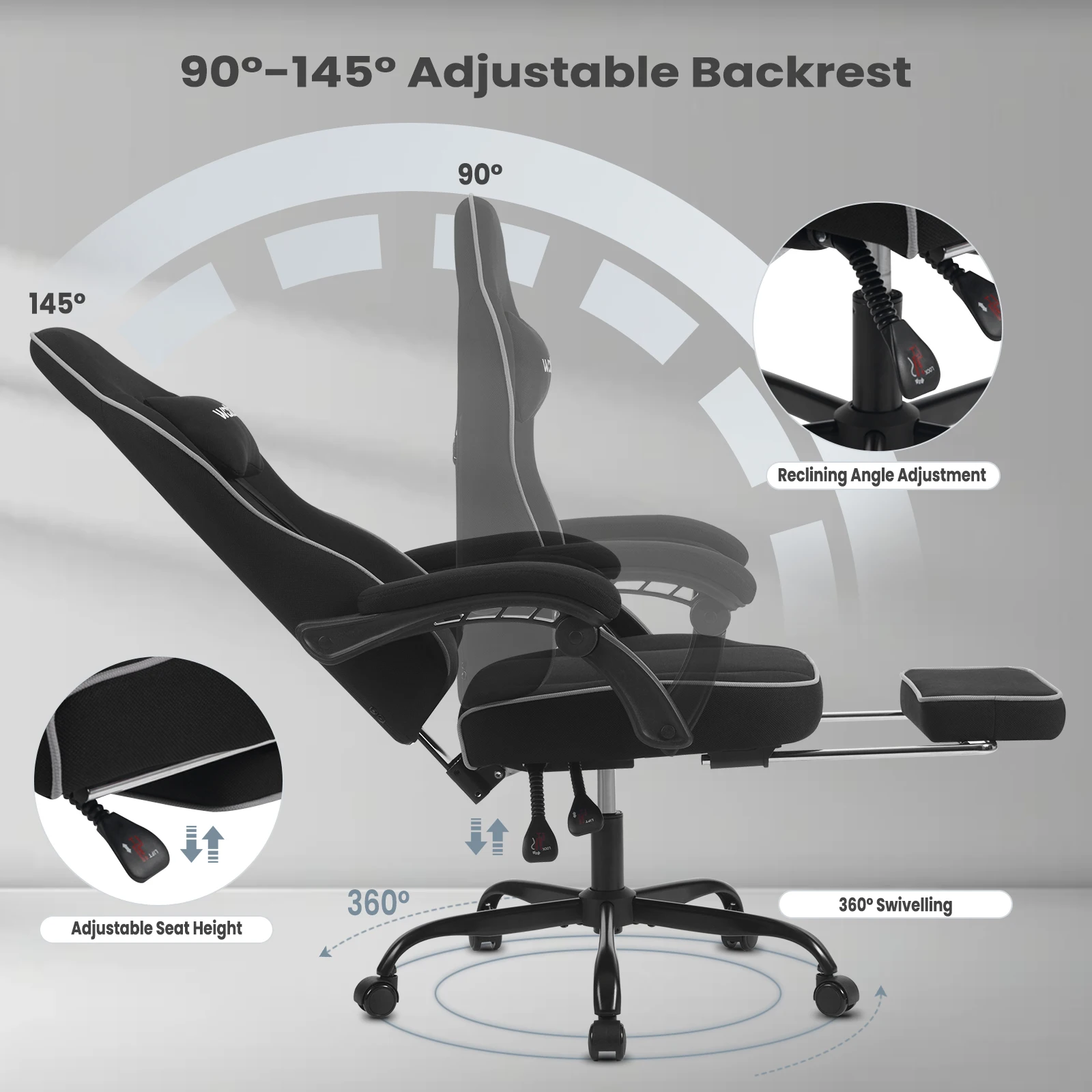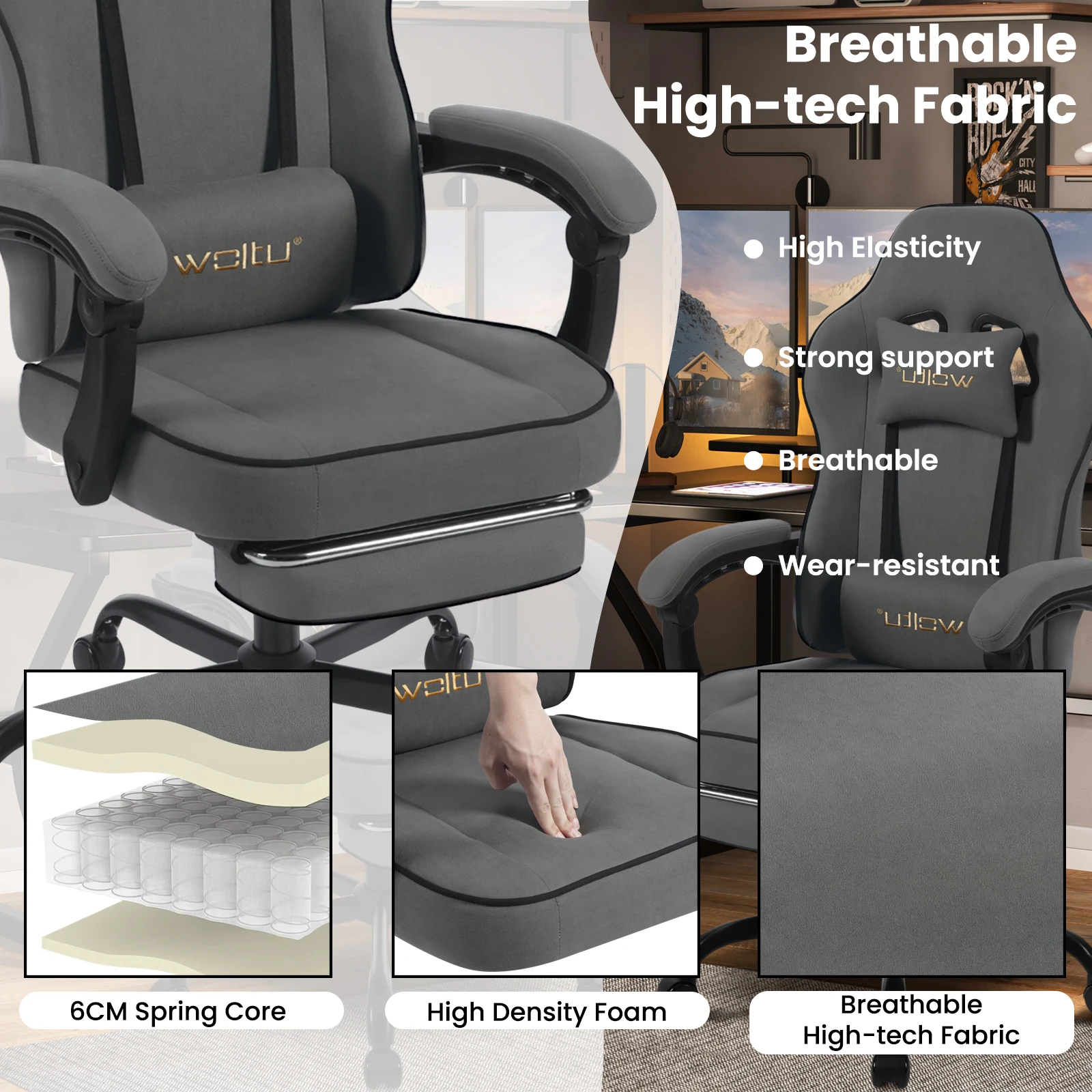 Comfortable fit: gaming chair is made of breathable pocket springs, foam padding and a cover made of technical fabric for a refreshing, comfortable seating experience. It provides good air circulation and temperature regulation as well as excellent elasticity and support, avoiding discomfort caused by heat and moisture accumulation and you can survive the hot summer. Technical fabric is durable, water and dirt resistant and wear-resistant