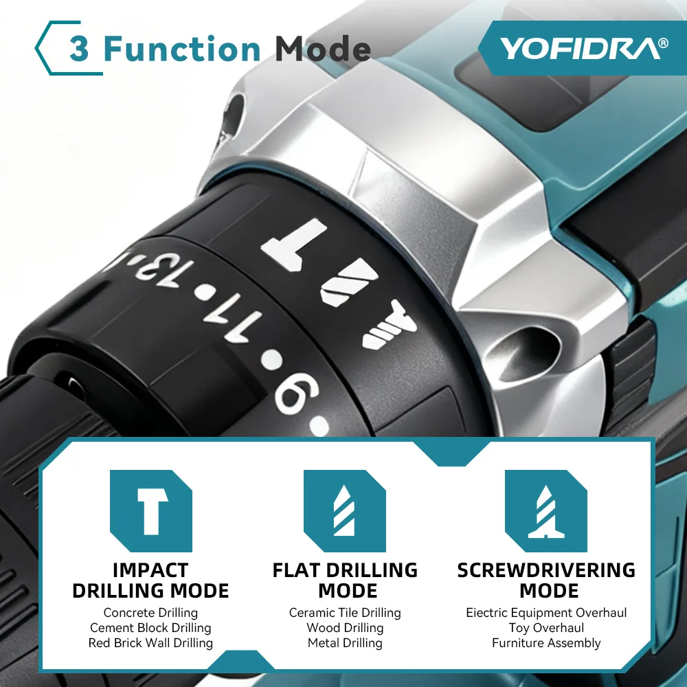 3 Working Modes: Impact, Drilling, and Screwdriving modes for various tasks.