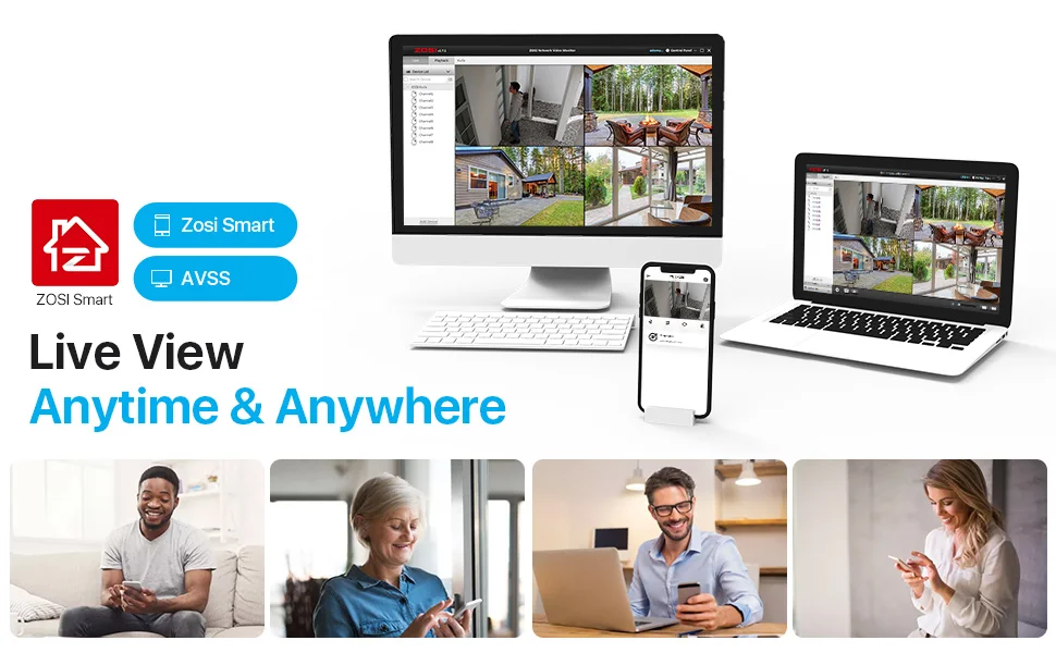 Download the Zosi Smart app on your smartphone (iOS or Android), and enjoy four cameras simultaneous viewing on the app. You could also view the live view on computer via AVSS PC client.
