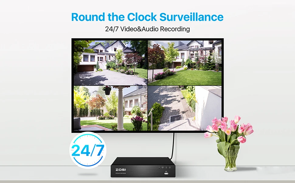 Expandable 24/7 recording kit covers every corner of your house with up to 8 cameras running simultaneously, so you never worry about missing a thing.