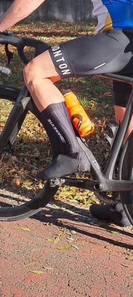 The sock mouth is made of anti slip silicone to ensure that the shoe cover stays in place on the leg and guarantees the best aerodynamic effect
