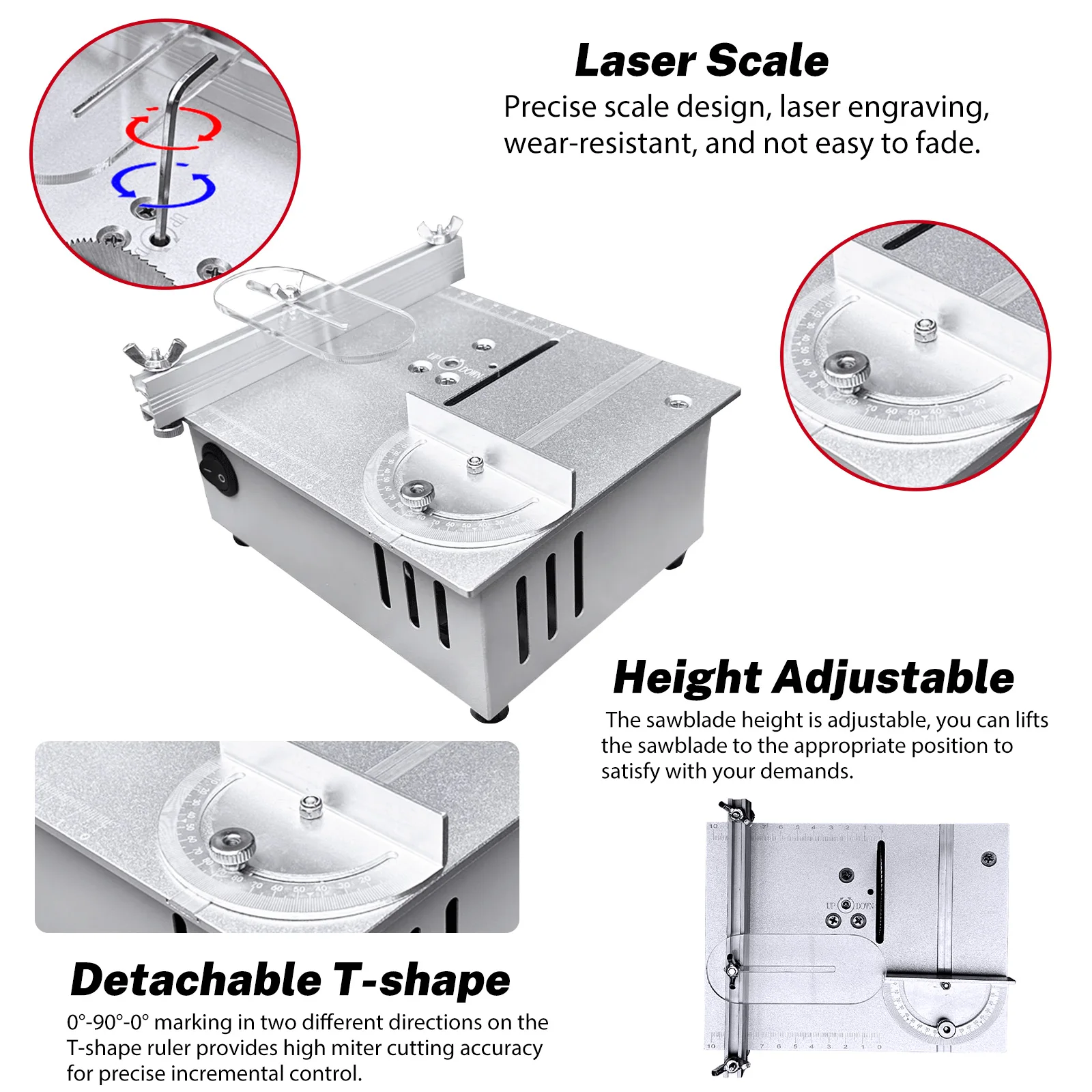 3. [Wide application] Mini table saws are very suitable for professionals or amateur enthusiasts to use, and are also very suitable for various shapes, handicraft workshops, interest research, creative research and development, etc; Attention: Please do not directly touch the edge of the saw blade with your hands to avoid accidental injury!