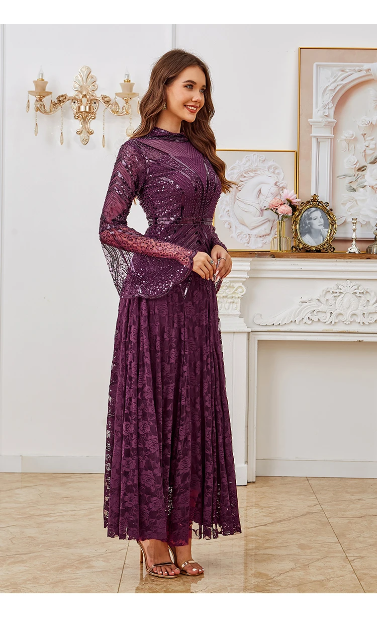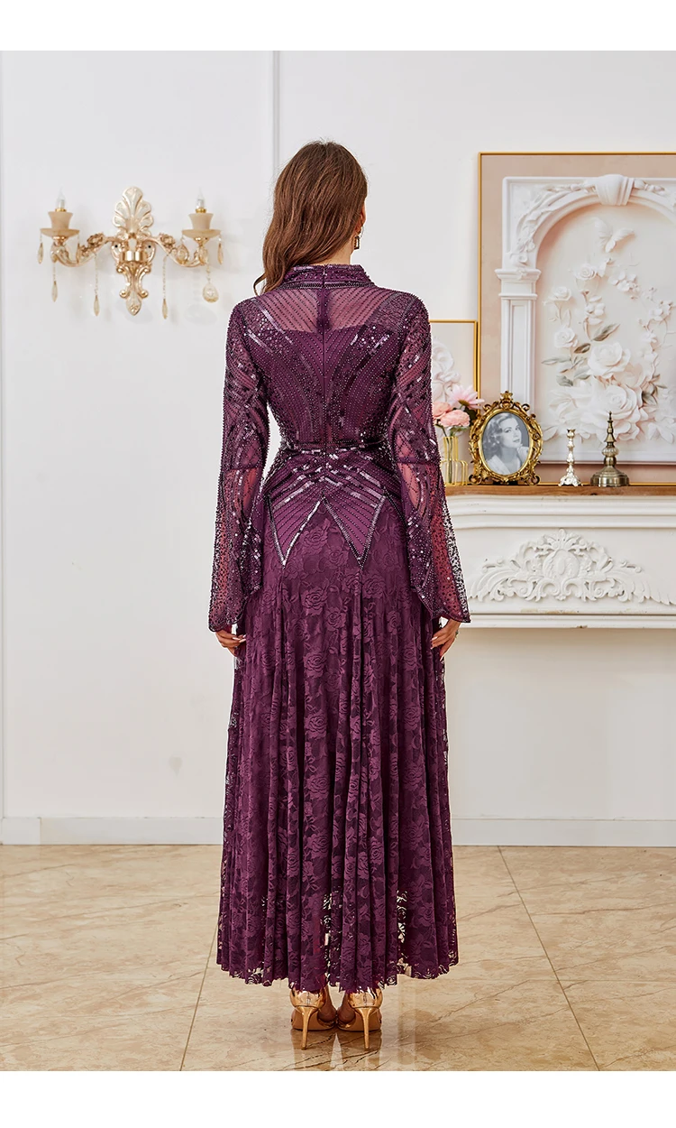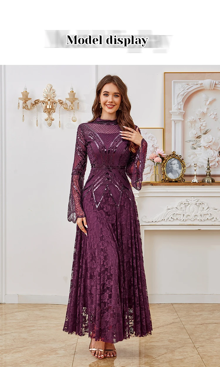 1 review for Elegant Black Prom Ball Sequin Bead Dress Maxi Long Sleeve Evening Gown With Lace Dress For Halloween, Christmas, Party, Wedding