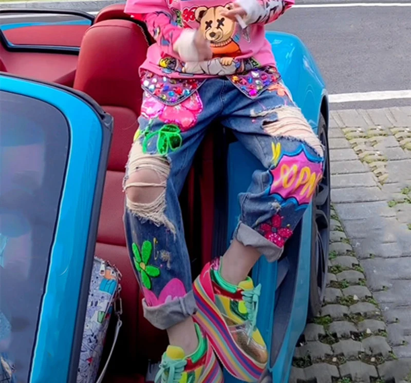 1 review for Straight Jeans Women High Waist Jeans Denim Ankle Length Pants Pockets Casual Loose Zipper Fly Distressed Ripped Holes 2025
