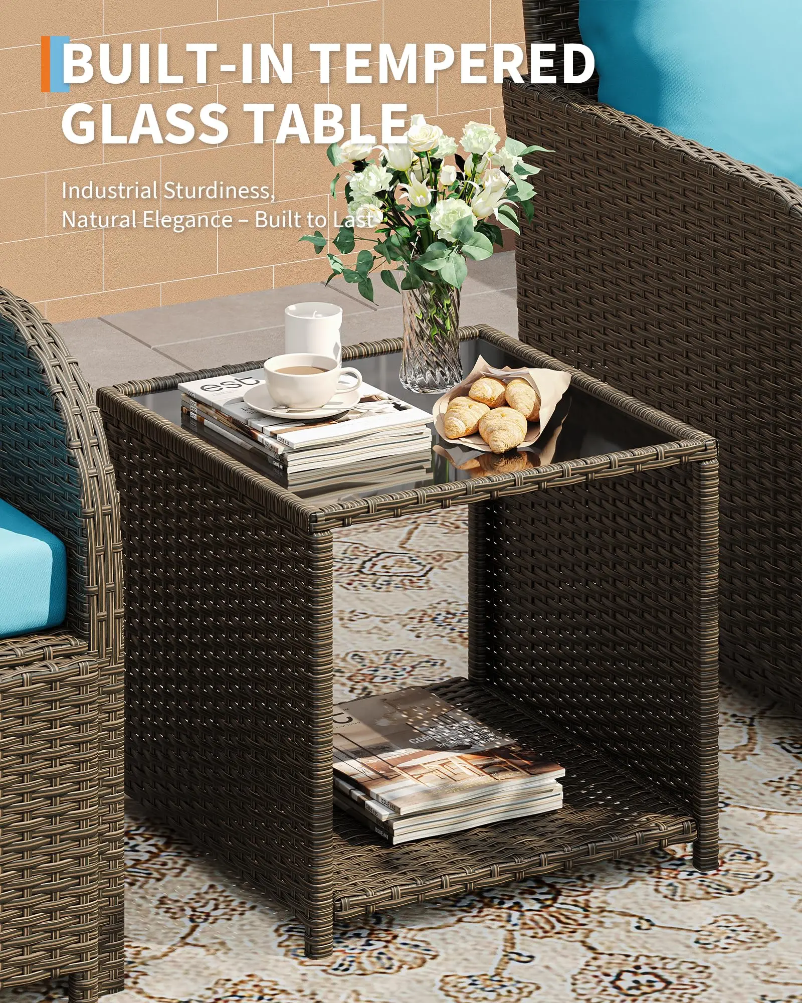 �� Practical Storage & Side TablesionThe 2 Ottomans come with built-in hidden storage space for outdoor cushions, blankets or small items, keeping your patio organized. The tempered glass-top side table offers a stable surface for drinks, snacks or decor, ideal for outdoor relaxation.
