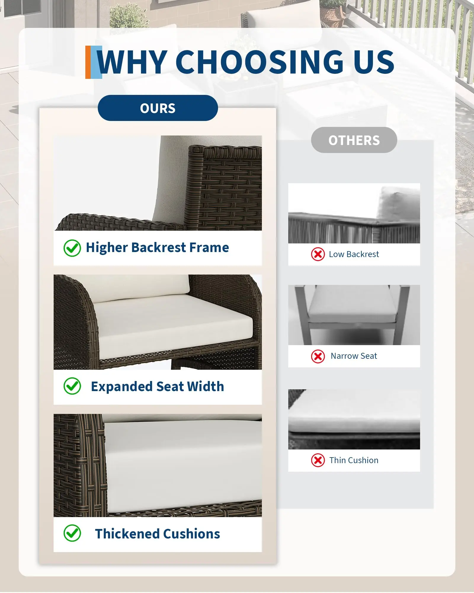 �� Premium Weather-Resistant Wickerols Crafted from high-density PE rattan (Wicker) with excellent UV and weather resistance, it with stands outdoor sun, rain and humility without fading, cracking or deformation. The sturdy metal frames ensures long-casting durability for years of outdoor use.