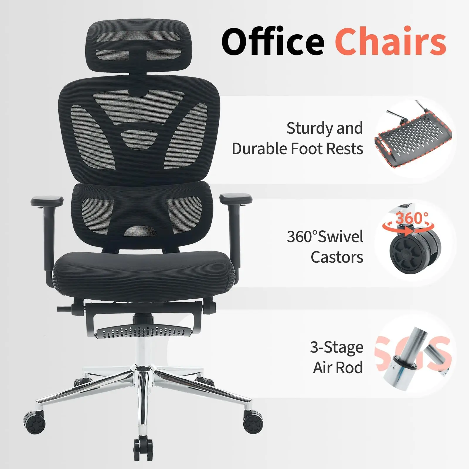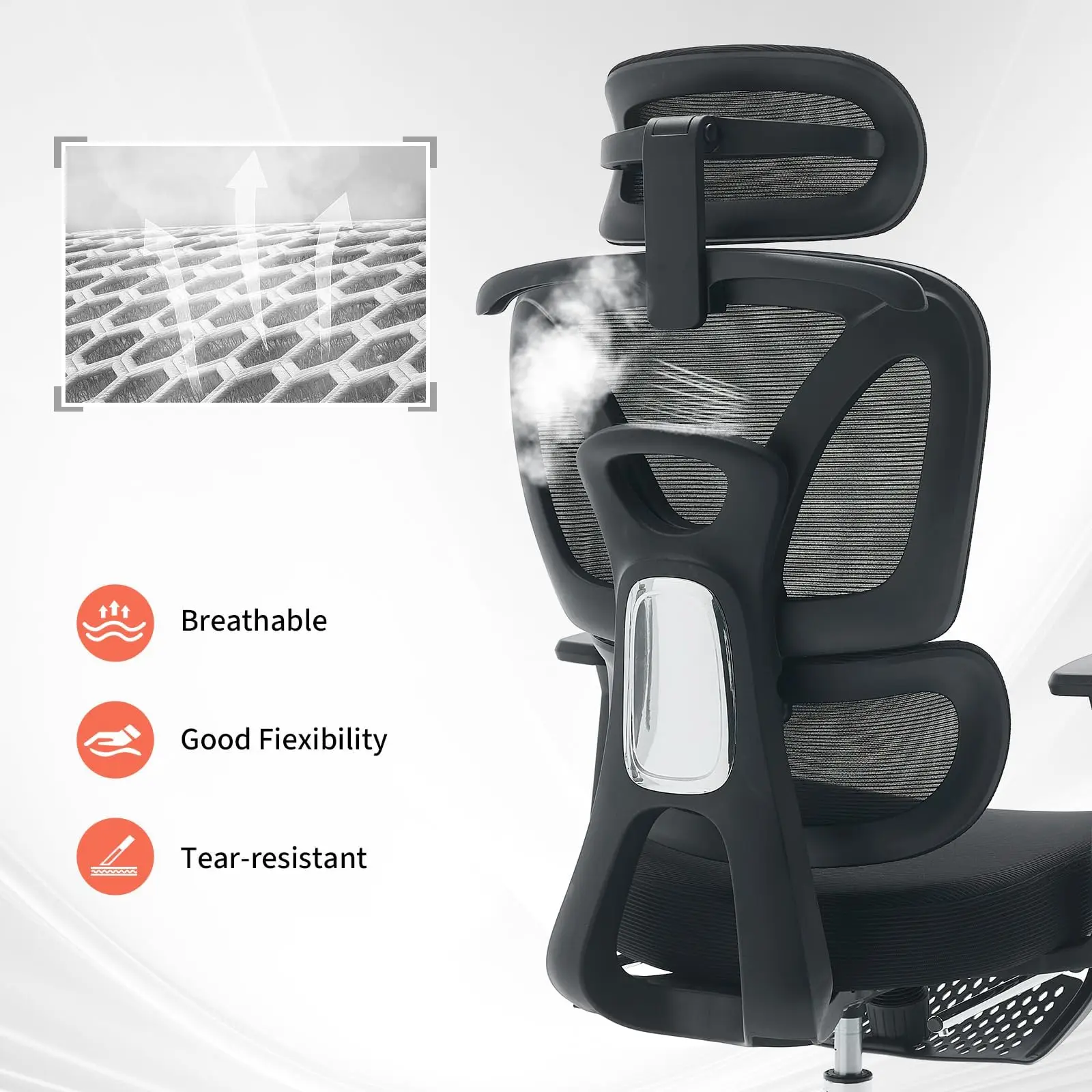 Breathable skin-friendly mesh backrest and thick, pressure-relieving seat cushion keep you cool and comfortable; smooth, quiet 360° casters protect your floors.