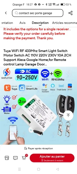 Tuya WiFi RF 433Mhz Smart Light Switch Motor Switch AC 110V 220V 230V 10A 2CH Support Alexa Google Home,for Remote control Lamp Garage Door…