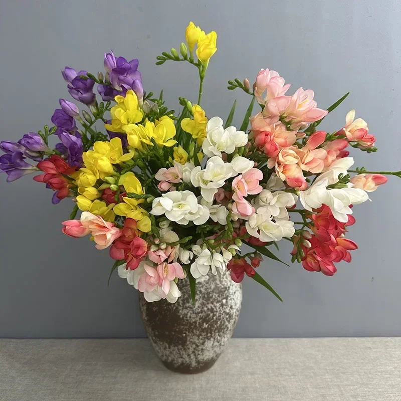 4pcs/lot Artificial Flowers Silk Fragrant Snow Orchid Home Bedroom Decoration Fake Flower Simulation White Freesia Floral