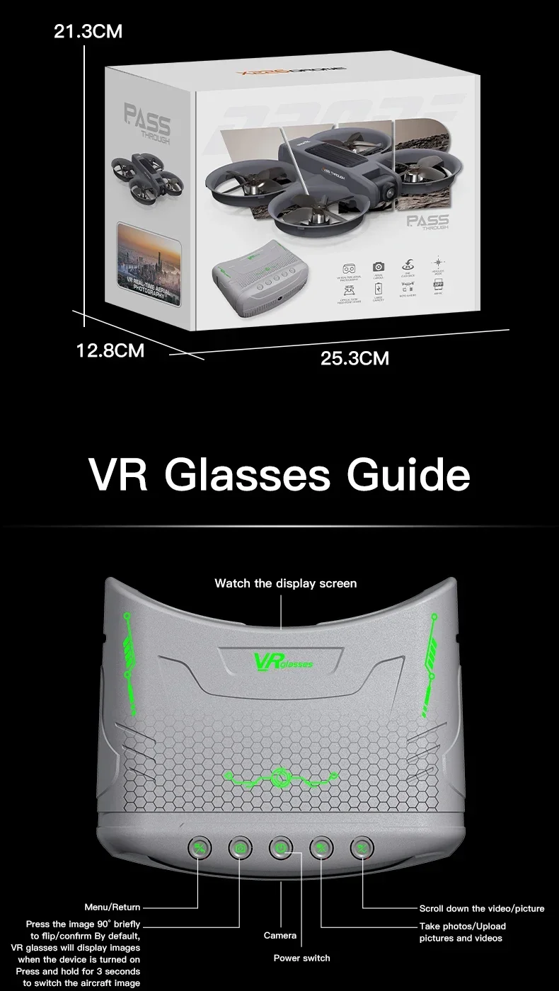 V226VR-brushless motor, with charging VR display with screen, electric adjustment camera, optical flow height setting function, dual camera switching, speed switching, headless mode, six channels with gyroscope, roll