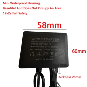 * Input: 100V~240V , 50~60Hz* Output: DC 12V 2A / 2000mA 24W* DC plug size Outer Diameter: 5.5mm .