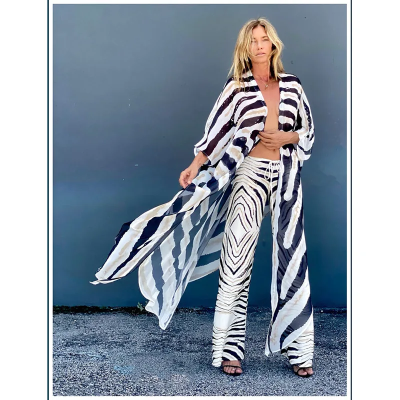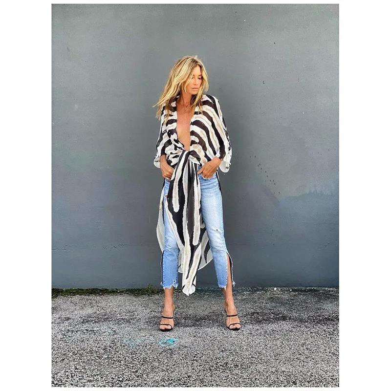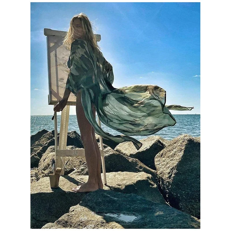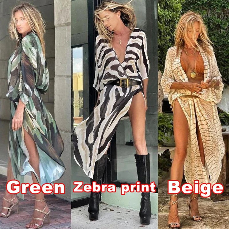 1 review for 2024 Boho Sexy Striped Chiffon Bathing Suit Cover-ups Beach Wear Kimono Dress For Women Summer Swimsuit Cover Up