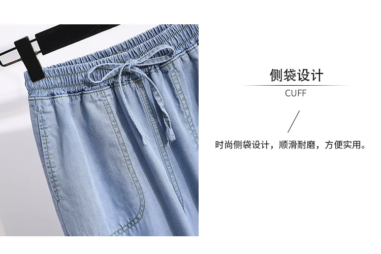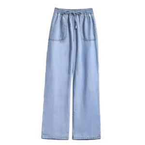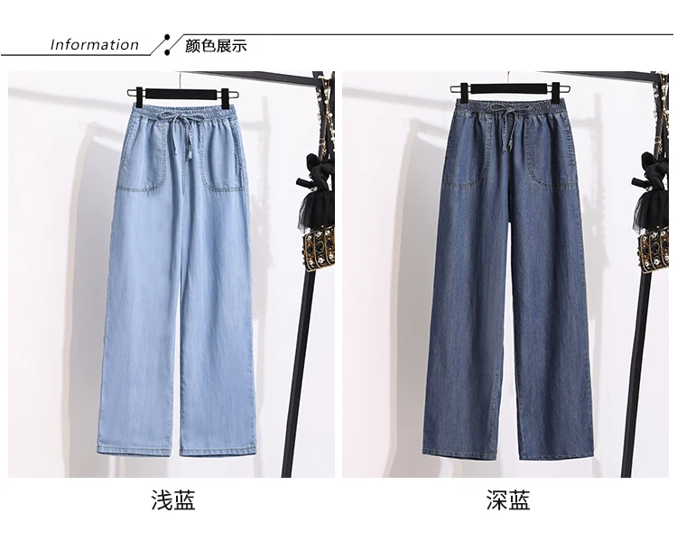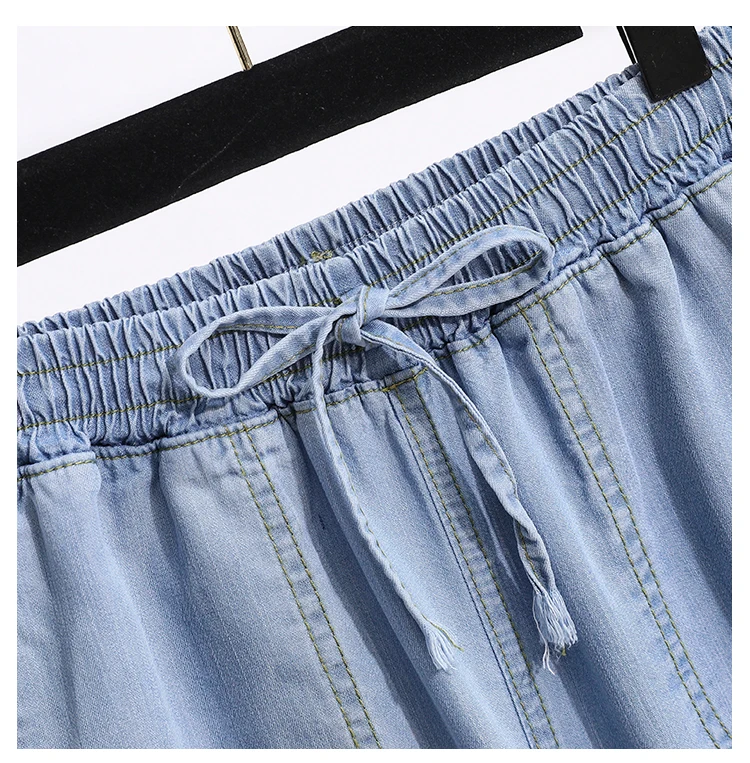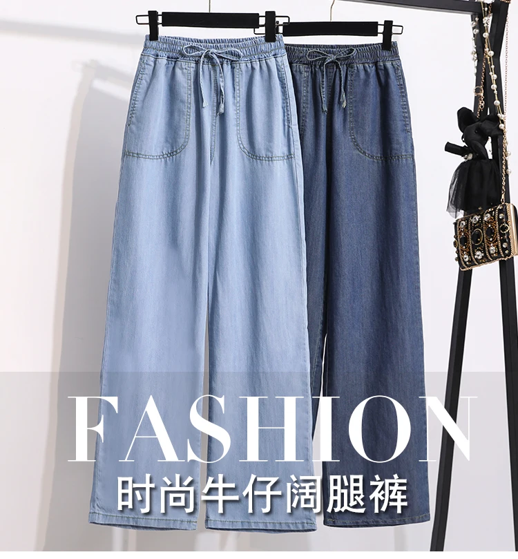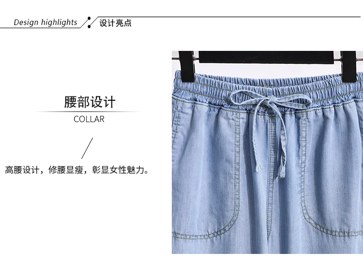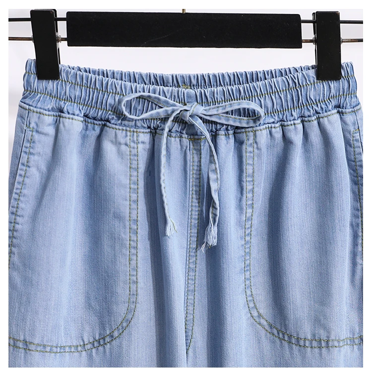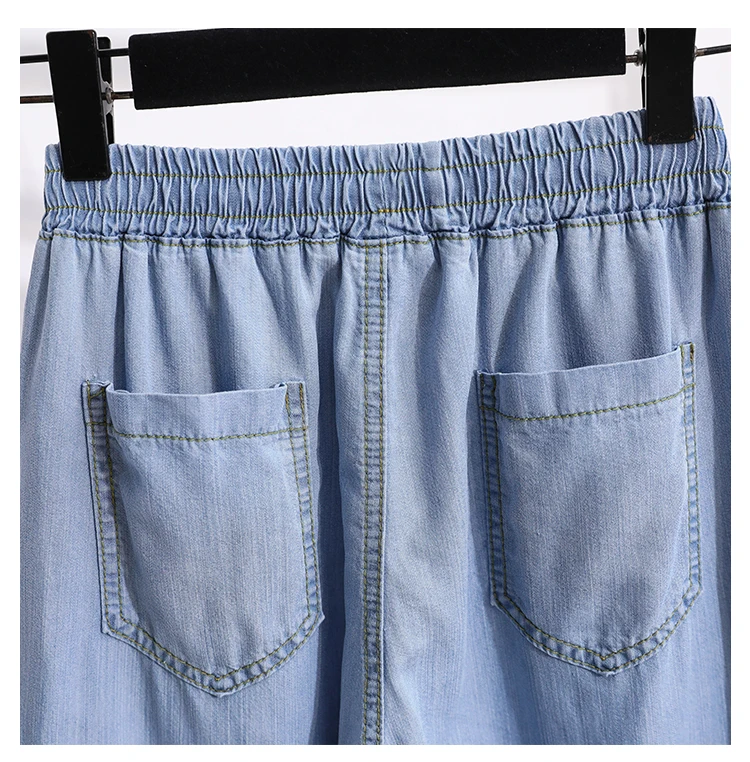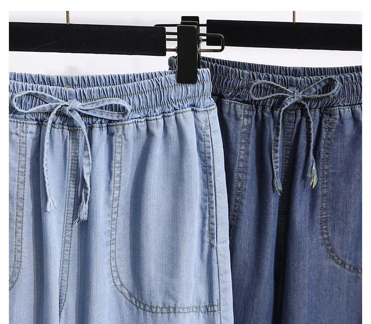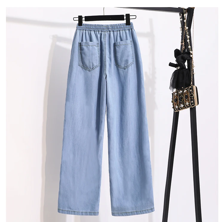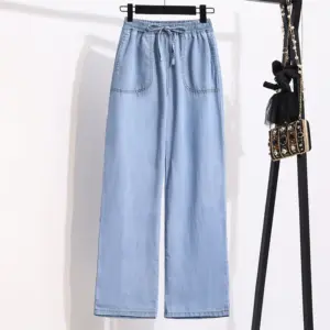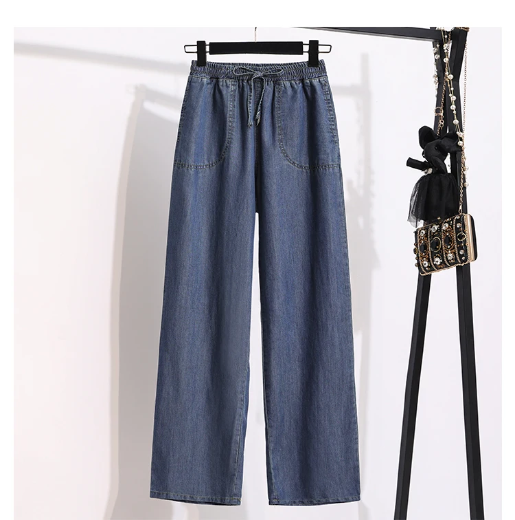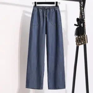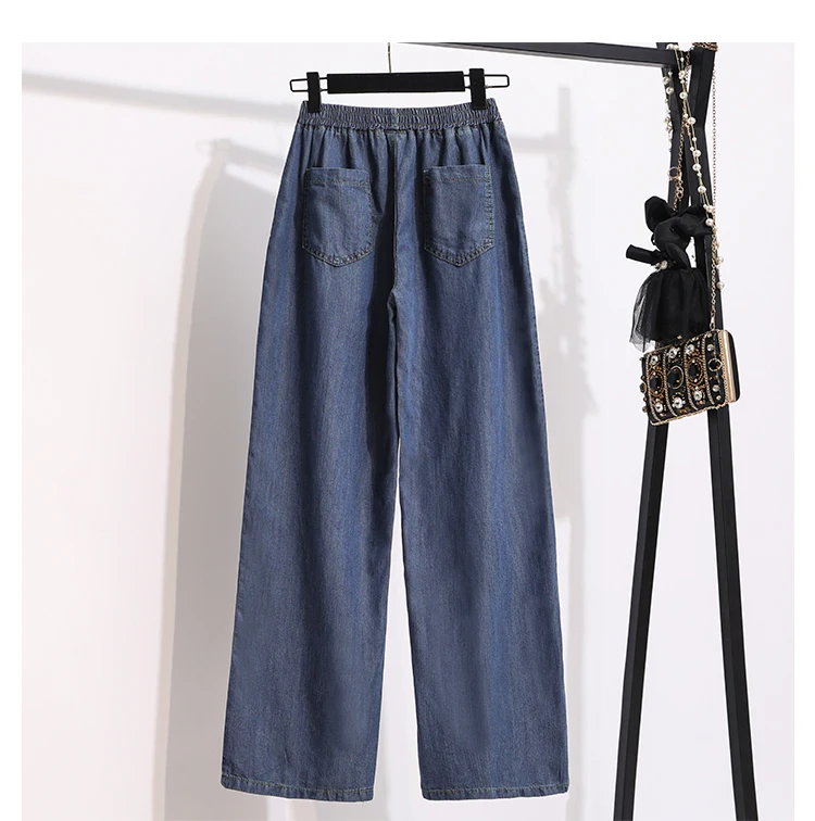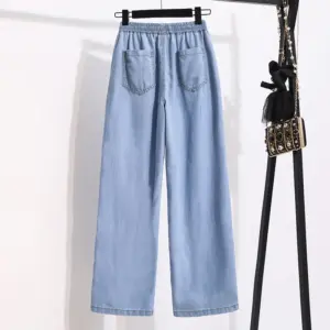 1 review for 2024 New Arrival Summer High Waist Women Jeans Thin Cotton Denim Ankle-length Pants Elastic Waist Softener Wide Leg Pants V891