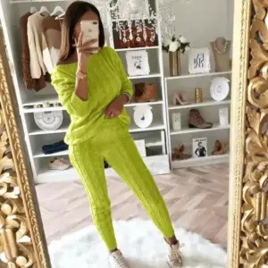 2024 New Autumn Winter Women Knitted Tracksuit Two Piece Set Female Sweater Tops + Elastic Waist Pant Knitted Suit Women Outfits
