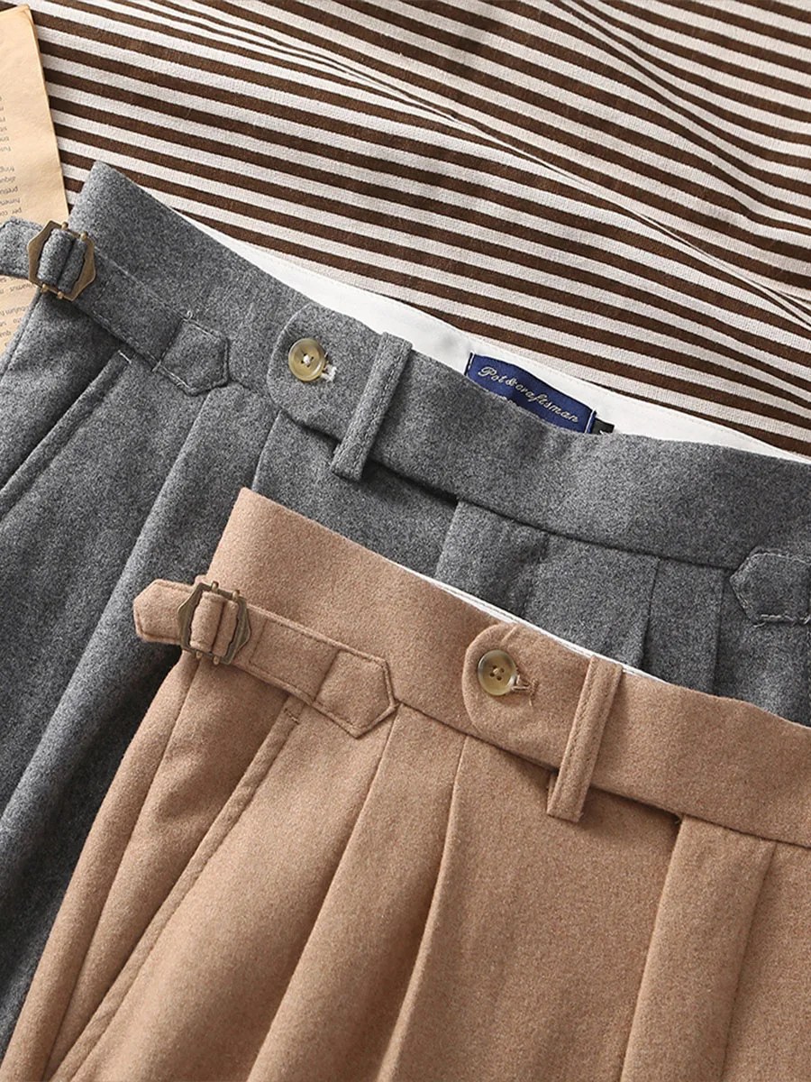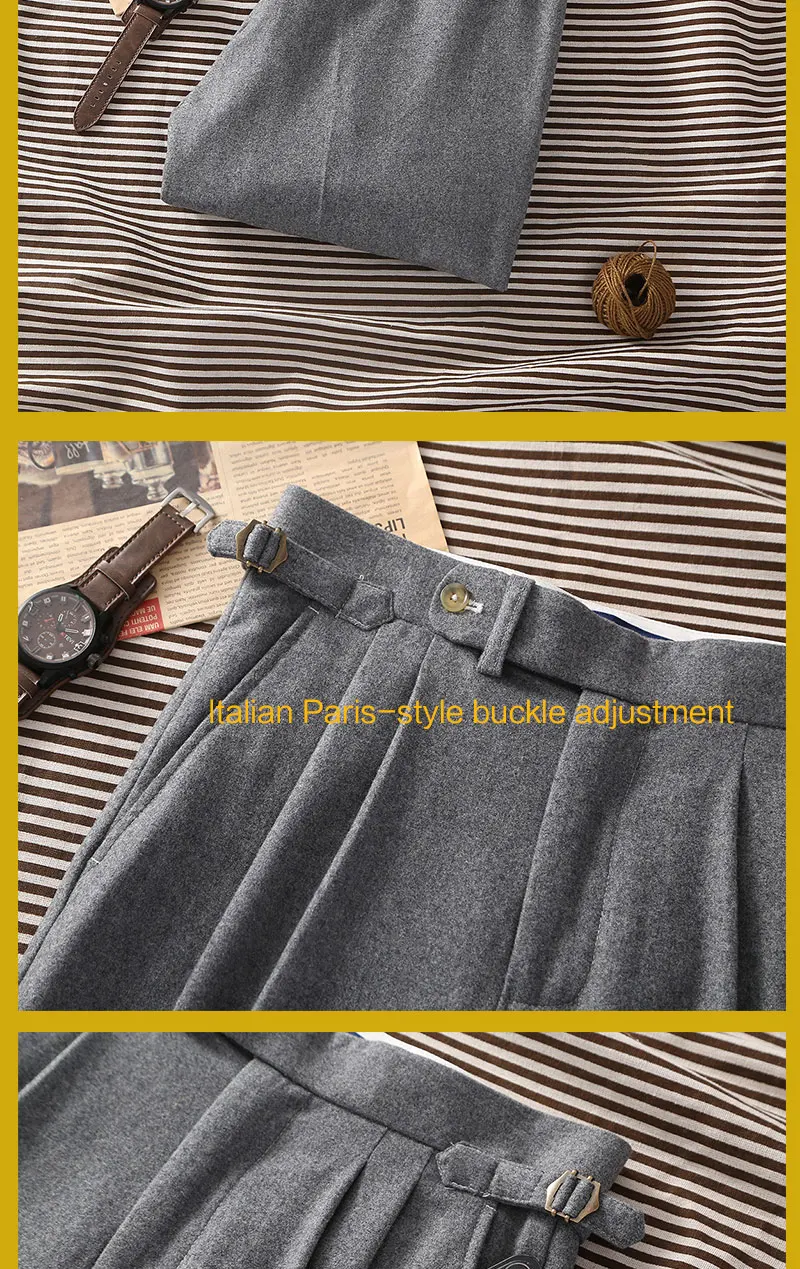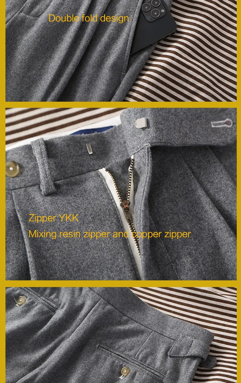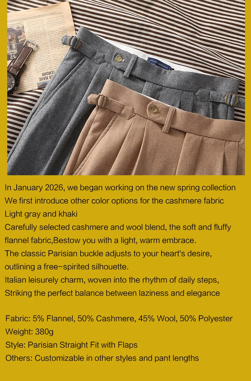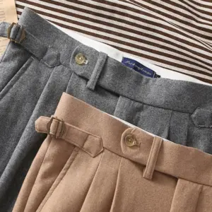 1 review for 2026 Spring Light Flannel Loose Straight Casual Pants with Italian Parisian Button Adjustment – Customizable Men’s Suits