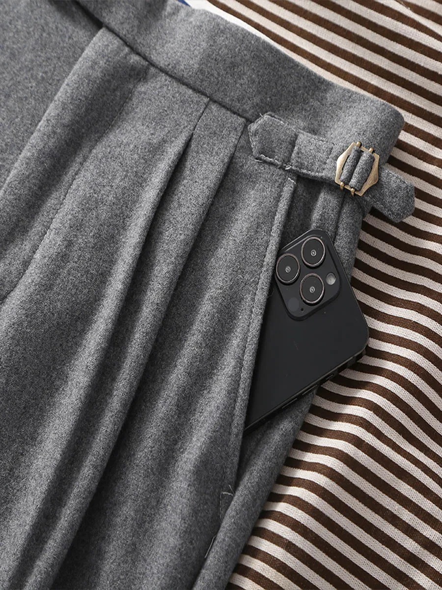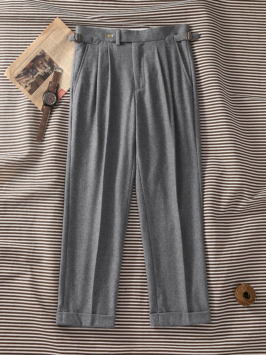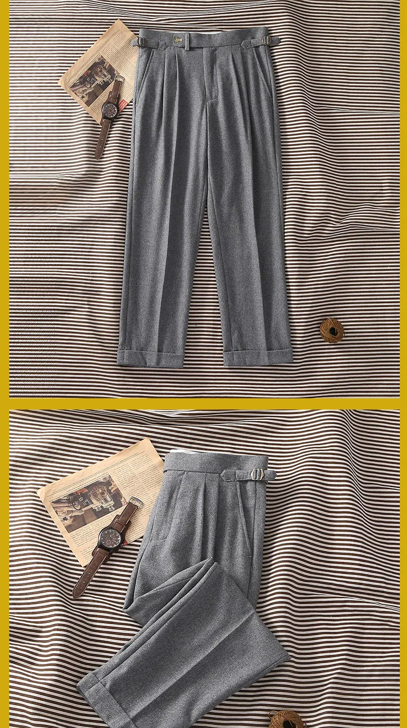 1 review for 2026 Spring Light Flannel Loose Straight Casual Pants with Italian Parisian Button Adjustment – Customizable Men’s Suits