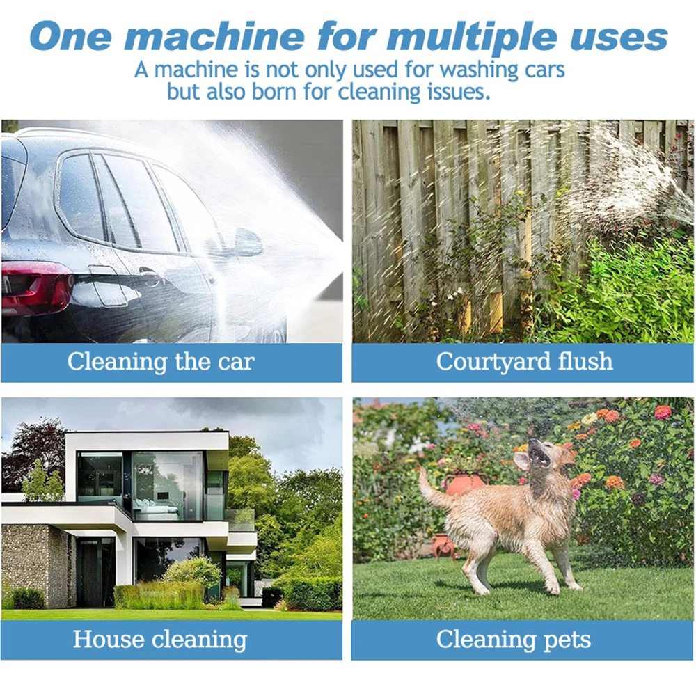 1. [45 Bar/652 PSI High Pressure Cleaning Machine] The maximum working pressure of the power water gun can reach 45 Bar/652 PSI, with a maximum inlet of 4.5 MPA and a spray speed of up to 270 liters/hour, which can quickly remove stubborn stains. Suitable for cleaning cars, lanes, walls, floors, swimming pools, windows, and pet showers.