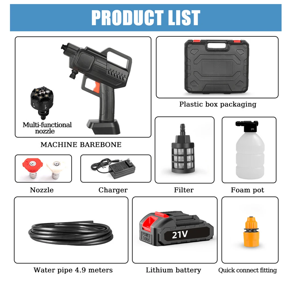 11 reviews for 6in1 45Bar Cordless High Pressure Cleaner Washer Spray Water Gun Car Wash Pressure Water Cleaning Machine for Makita 21V Battery