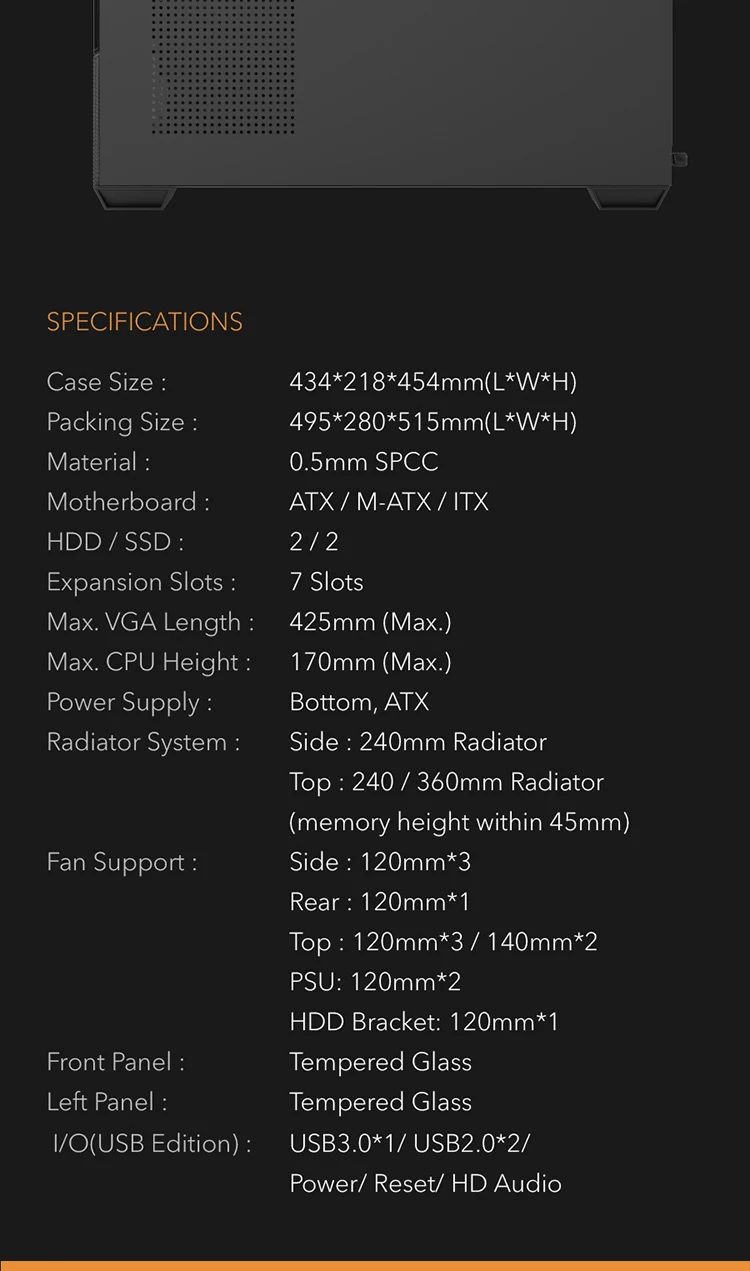 (3)Supports up to 120mm*10/140mm*2 fan sand 360mm radiator