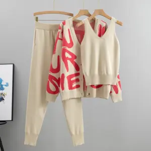 4 reviews for Autumn Winter 3 Piece Women Cardigan Tracksuits Fashion Knitted Pocket Pant Set Ladies Sweater Suit European Fashion Outfits