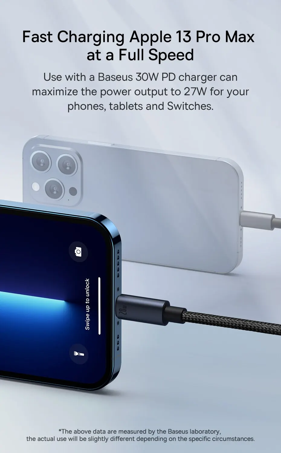 • Fast Charging :Charge your iPhone 14, 13, 12 Pro Max, or 12 Mini Pro Max quickly with the 20W PD USB C Cable from Baseus.