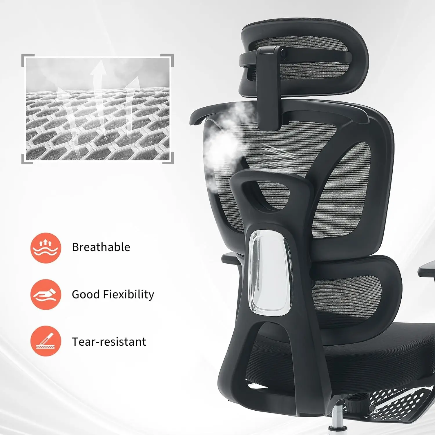 2.Breathable & Durable Mesh Material: Made with tear-resistant, high-flexibility mesh fabric that promotes air circulation, keeping you cool and comfortable even in extended sitting sessions, while ensuring long-lasting durability.