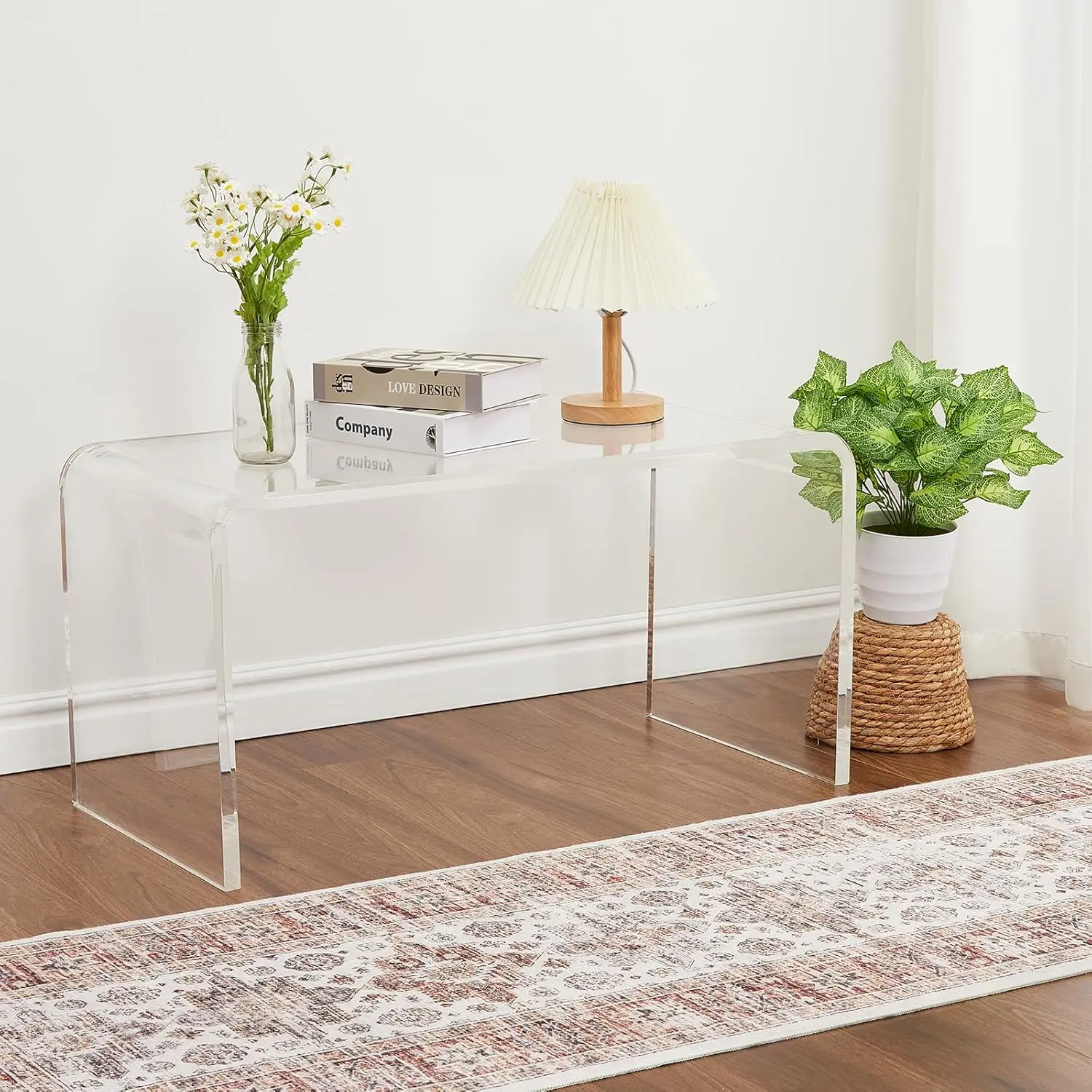 Modern Minimalist Design:This acrylic coffee table measures 32×15.8×16.3 inches (81x40x41 cm), offering a functional surface for beverages, snacks, and decorative displays while serving as a versatile workstation.Smooth rounded edges create a safer user experience by minimizing bump risks in daily use.
