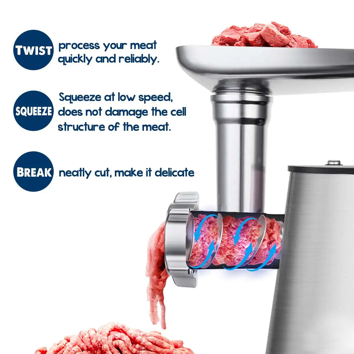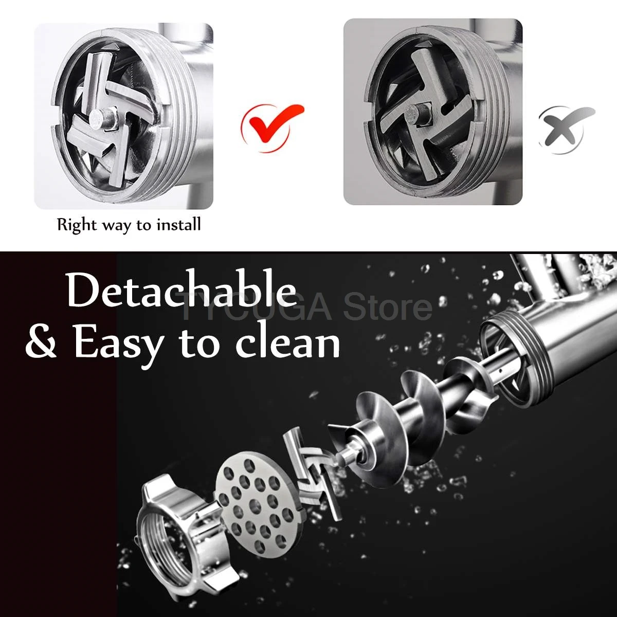 – Made of stainless steel,for eternity and will process your meat quickly and reliably.