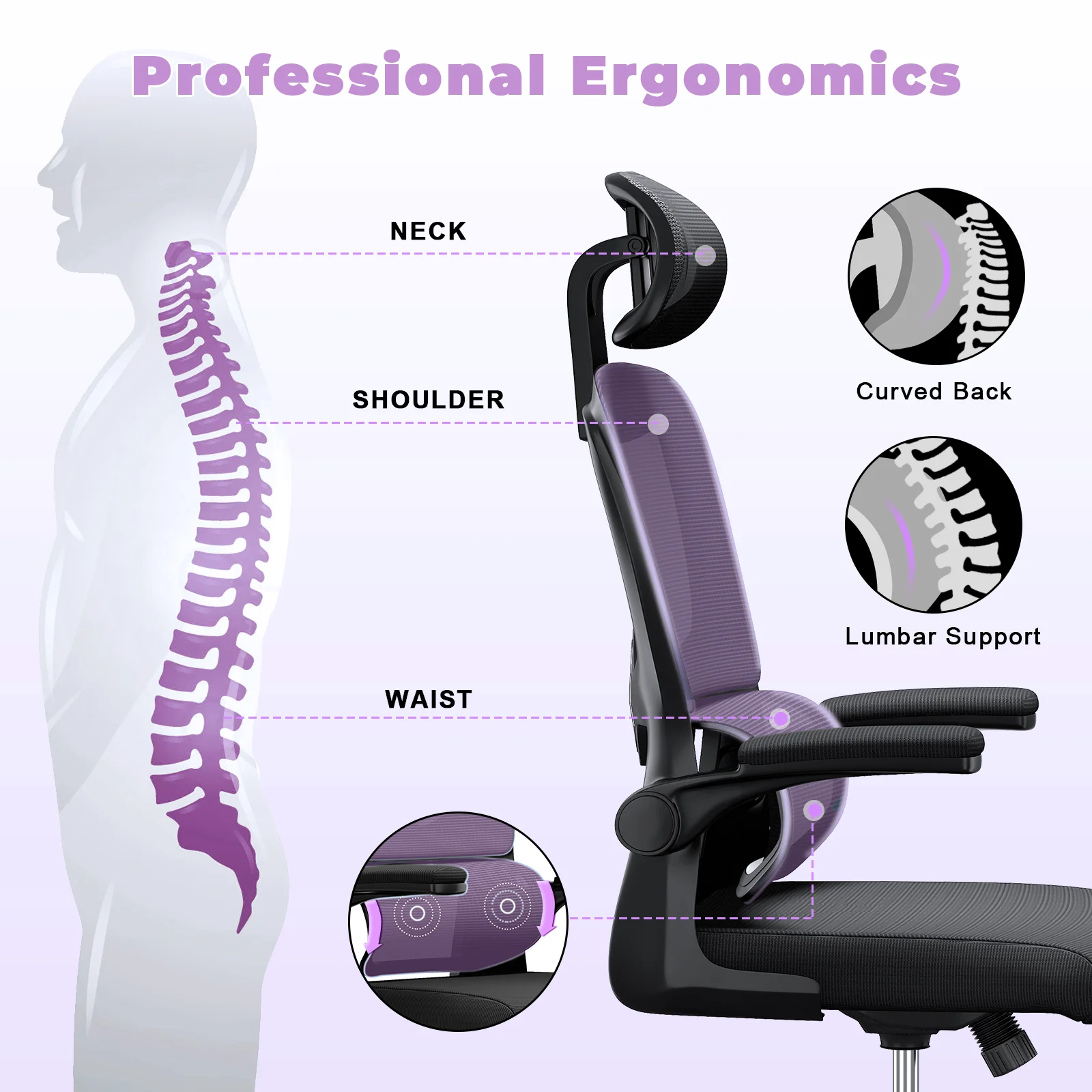 Ergonomiczny fotel biurowy, krzesło do biurka ze składanym podłokietnikiem, regulowanym na wysokość, oddychającym oparciem, obrotowym fotelem gamingowym