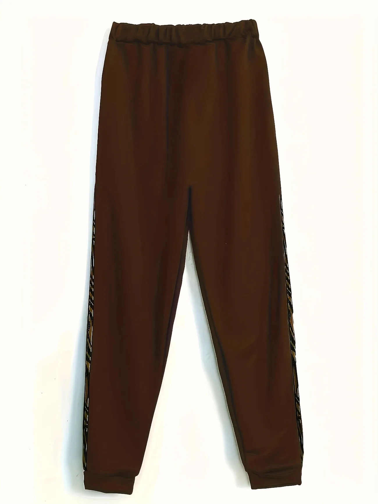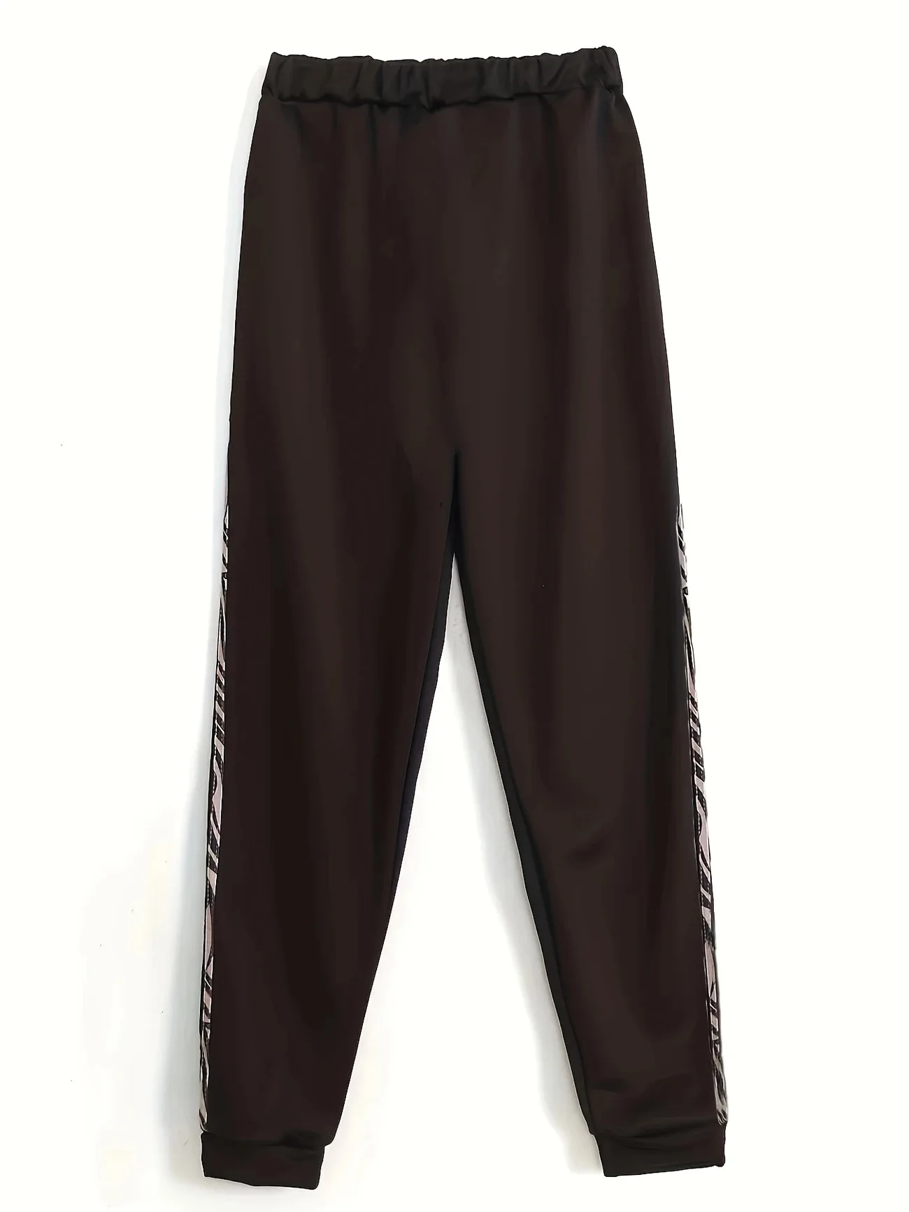 Modny, swobodny, damski, sportowy, dwuczęściowy komplet w paski, kieszenie, poliester, wygodny, styl na wiosnę 2025 r.