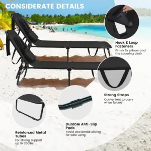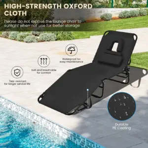 The Oxford fabric originally has several advantages, including not only ideal softness and breathability, but also excellent water resistance. Now we add a high strength PE coating, which makes the sun lounger even more tear resistant. More importantly, its metal frame is super strong and equipped with non-slip pads for guaranteed stability.