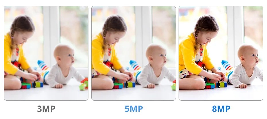 The 8MP camera has more pixels than the 5MP or 3MP camera and a sharper image