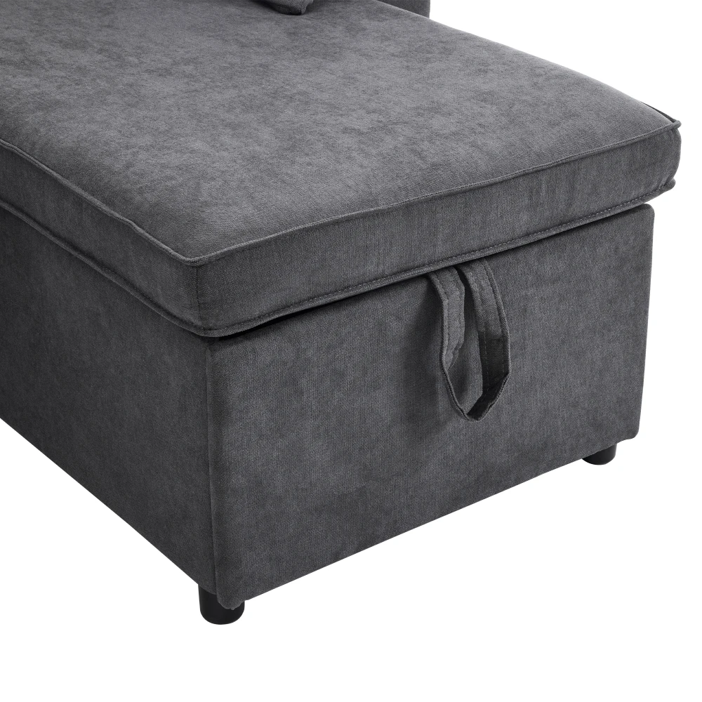 Very practical is also the storage function of this sofa. The hidden storage room under the chaise lounge provides room for books, blankets, pillows and other things of daily necessity so you can keep your living room clean.