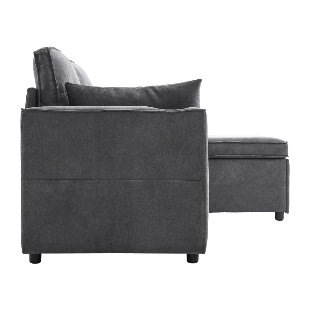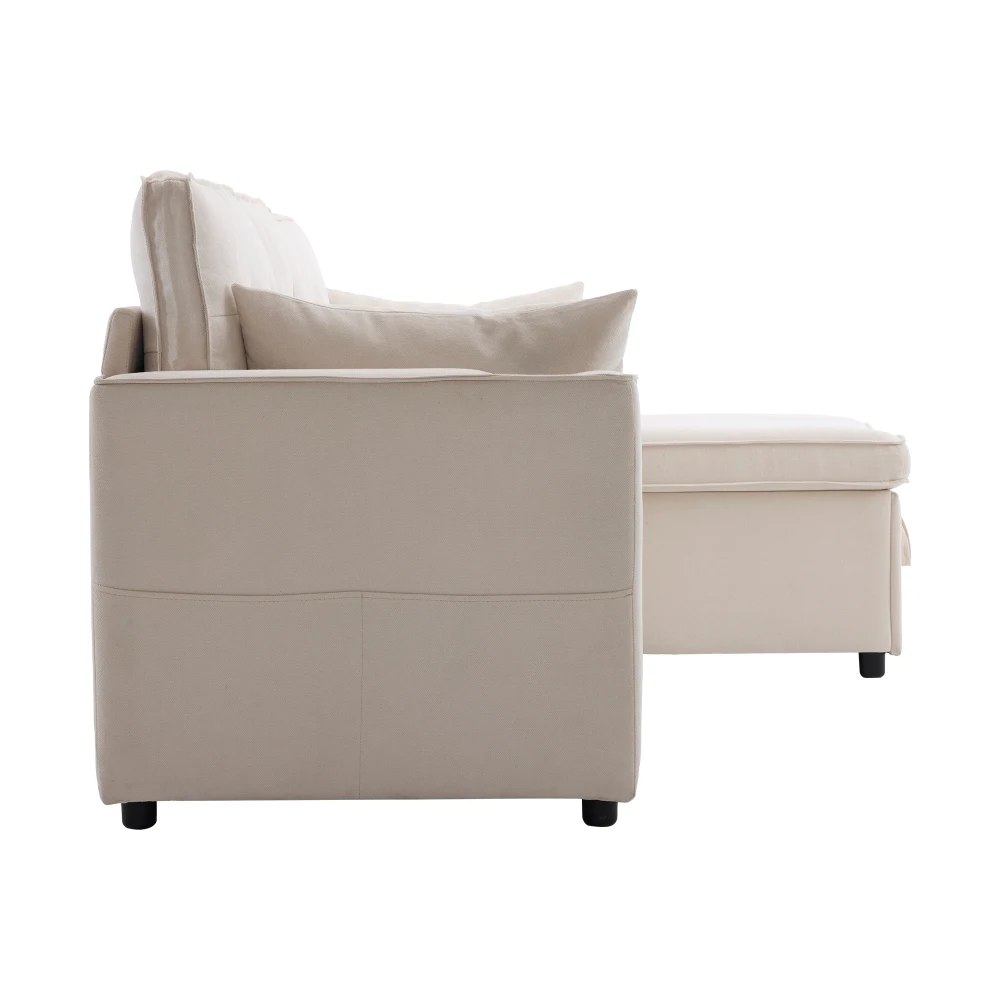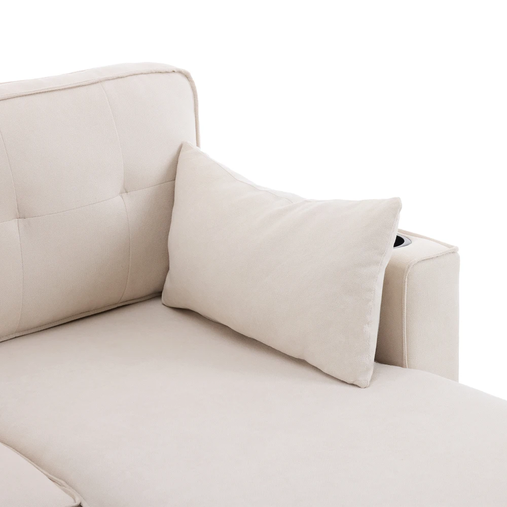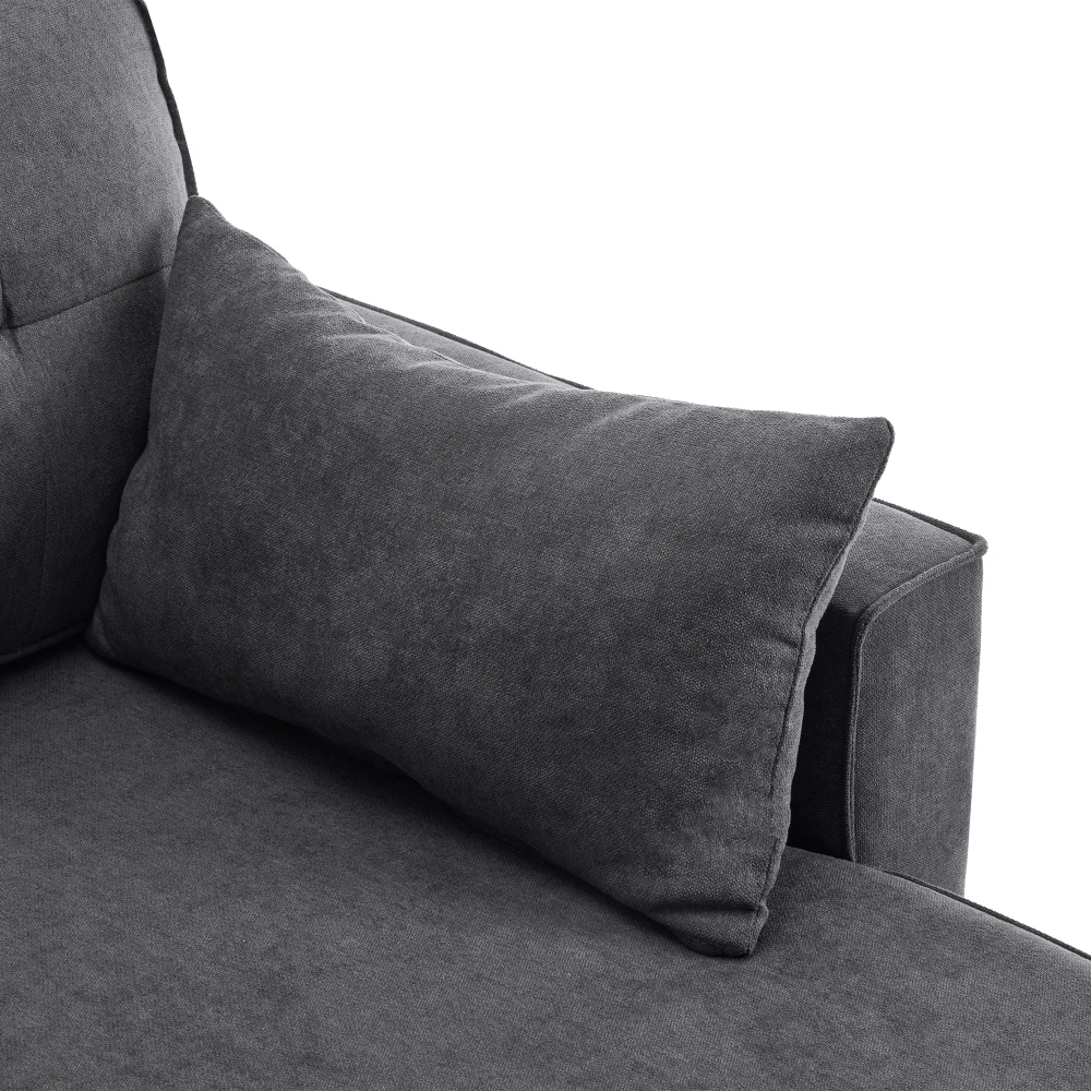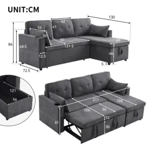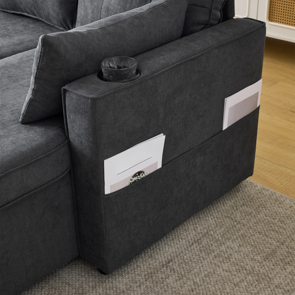 This sofa has a high backrest and is therefore perfect for home use. It is a multifunctional sofa where the positions of the chaise longue and sofa bed can be exchanged left and right, making it practical and flexible. Can be turned into a sofa bed for added comfort. On both sides of the armrest there are side pockets for storing remote controls etc. as well as beverage holders. With two decorative pillows and hidden storage under the chaise lounge. The sofa’s backrest and seat cushions are made of high-density sponge and soft cotton and linen fabrics that are comfortable, elastic, breathable and durable. Available in two colors, modern and elegant, it can be easily integrated into different decoration styles and gives the home style and comfort.
