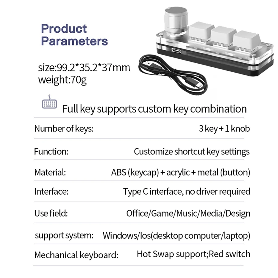 • Mini Size :The Macropad Macro Mechanical Keyboard is a mini size, making it easy to carry around and use on-the-go.