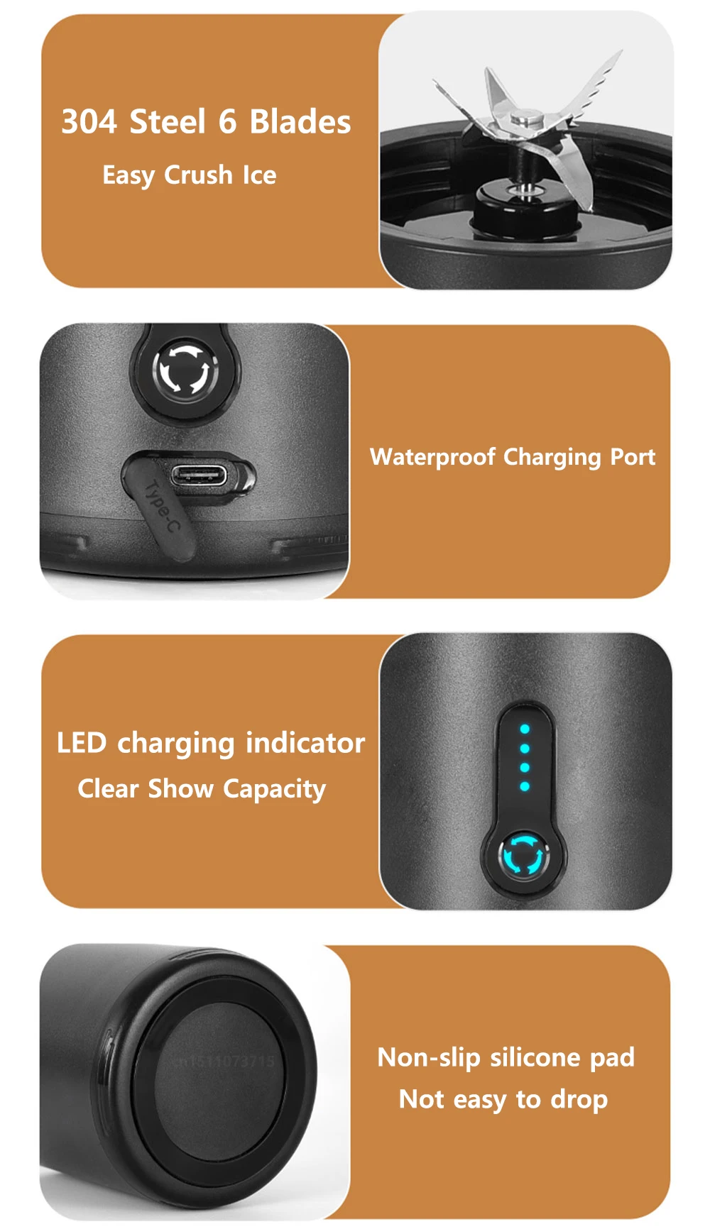 Battery: 4000mAh, quickly squeeze juice in 40 seconds , it can squeeze 10-12 cups of juice on one charge.