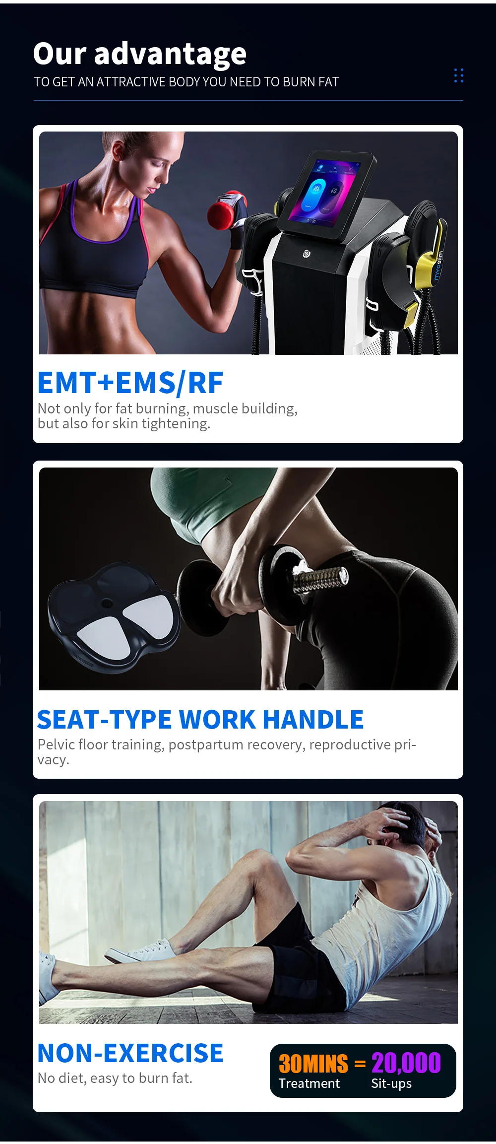 - Functions: body contouring, body slimming, body sculpt, muscle build, fat removal
