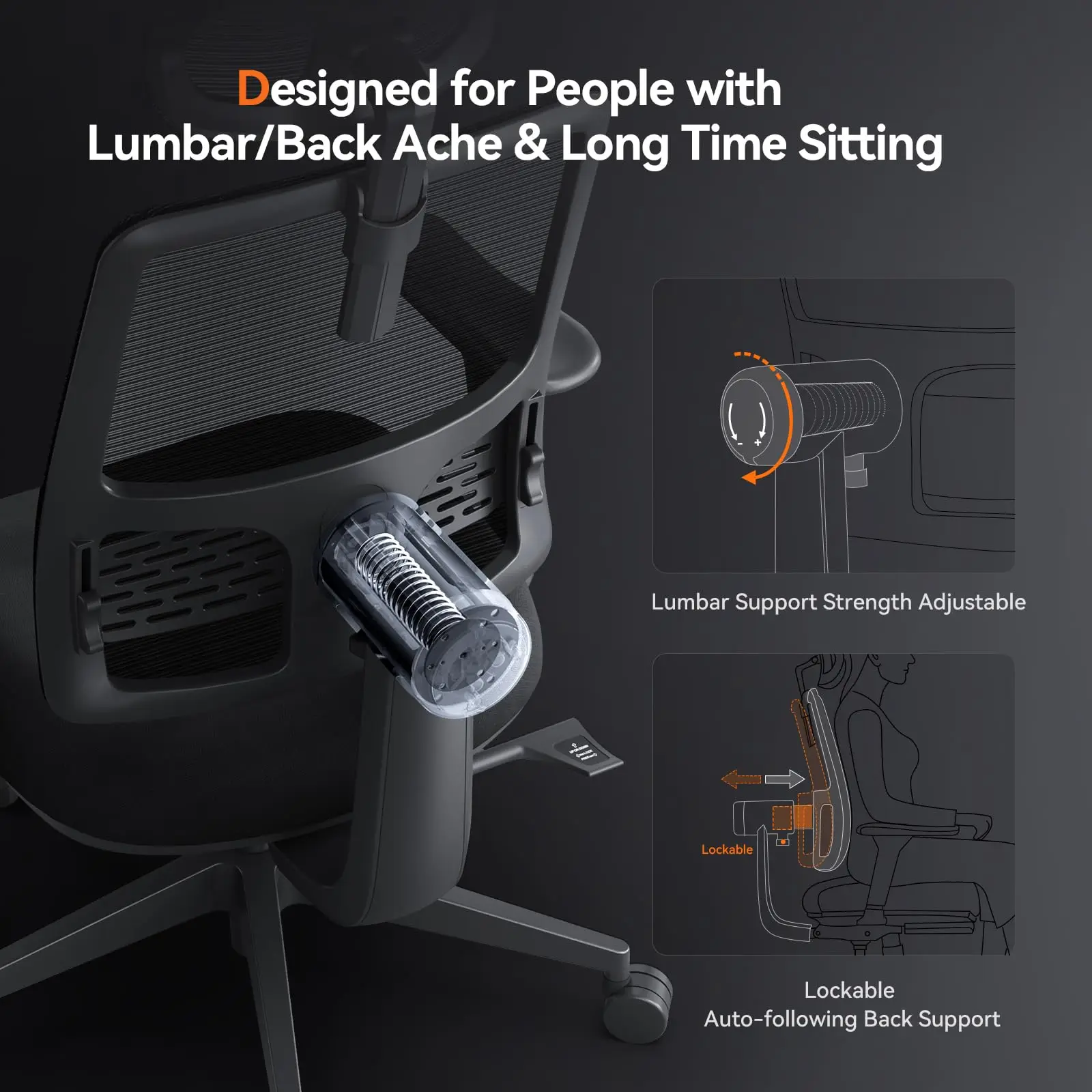 Backrest: Mesh, Patented Auto-following Mechanism |