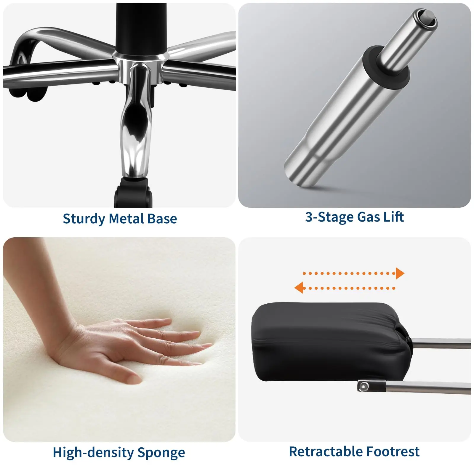 【Adjustability】The backrest angle can be adjusted from 90° to 135° to suit your work and leisure needs. It also features a height-adjustable seat and retractable footrest, allowing you to stretch out and relax during rests.