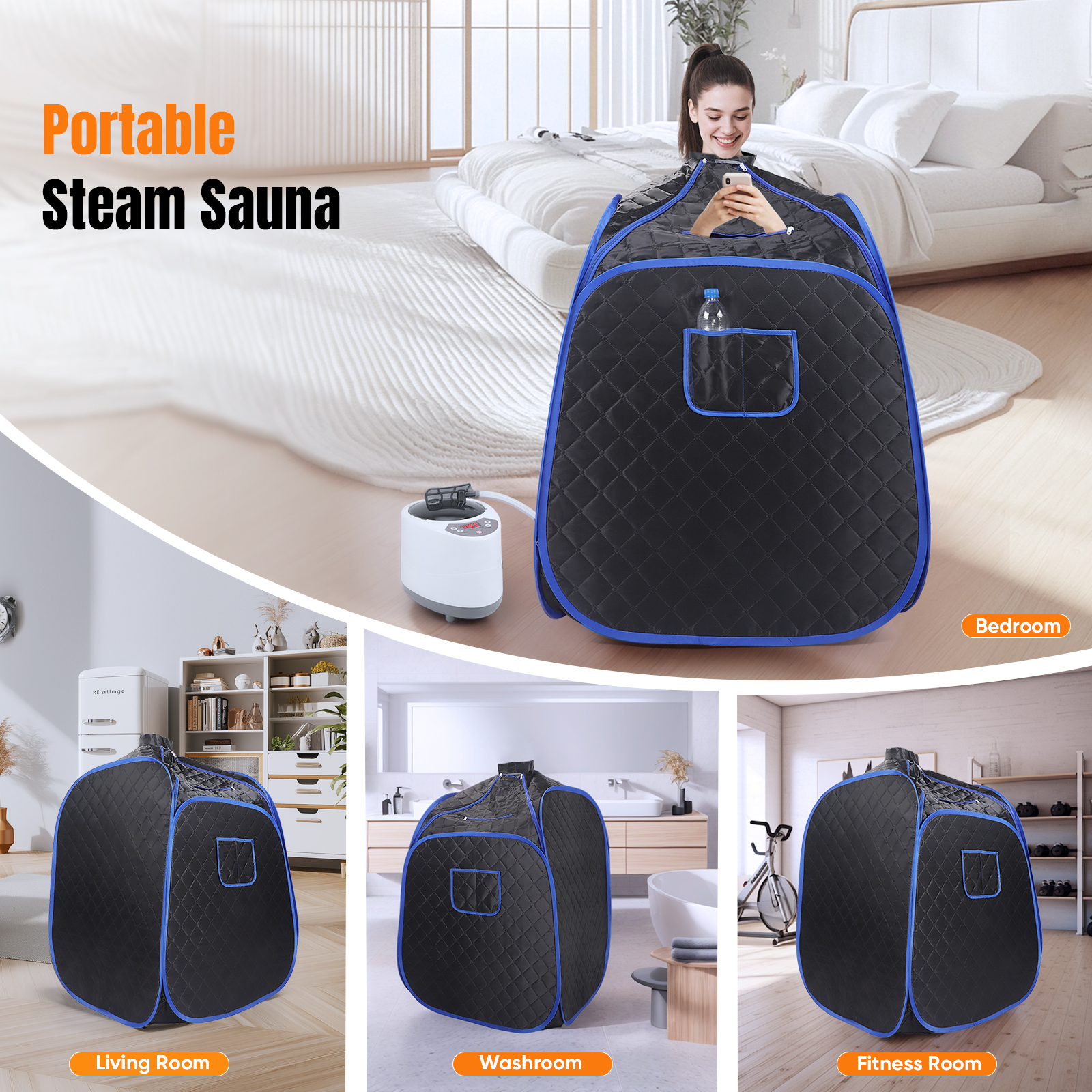Built with a rust-proof stainless-steel frame and a durable steam pot, this sauna is built to last. The waterproof lining, reinforced with precision stitching, provides excellent heat retention while remaining easy to clean and quick to dry.