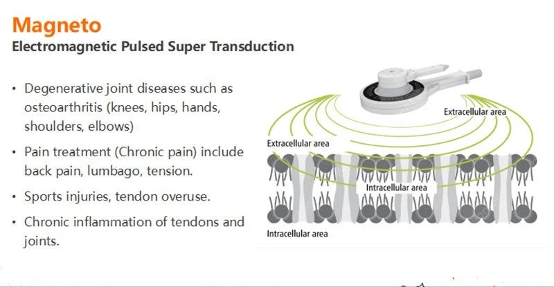 By using pulsed electromagnetic field therapy, more energy can be directed to specific locations in thebody. Damaged cells are reenergized by boosting electrical charges within the cell that restore it to itsnormal healthy state. Bio-currents which improve the flow of blood and oxygen to the tissues and theflow of ions and nutrients into the cells are created by PM. Energy is put back into the body byrecharging the mitochondria (the cells’ power producers). The additional energy is then stored in thebody from 4 hours to 10 days, enabling your body to use it as it needs.