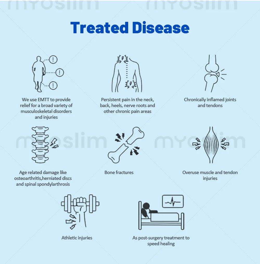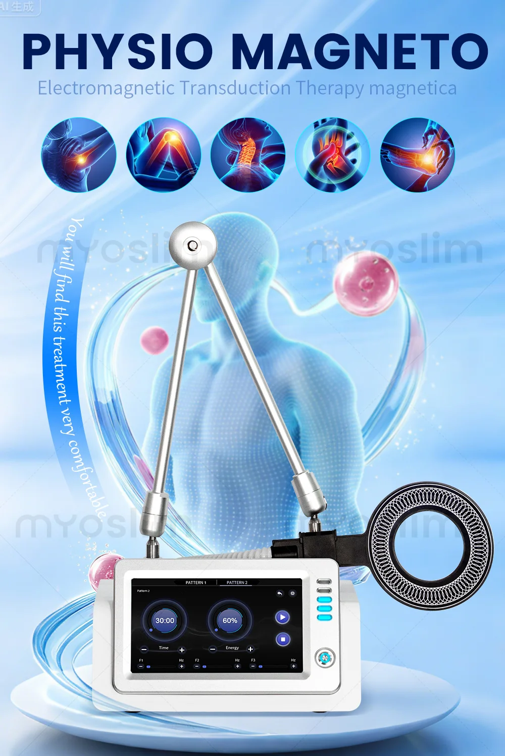 Unique progressive change pulse: slowly rising – continuous high-intensity stimulation slowlydecrease.Acceptable, painless, more comfortable body sensation.