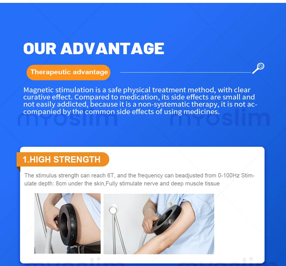 According to the principle of Faradayelectromagnetic induction, a large amountof energy is quickly discharged fromlarge-capacity storage capacitors to thecoil. The coil is stimulated by strong cur-rent to produce pulse magnetic field, it canpenetrate clothing, bones and other tis sues, generate inductive electric fields instimulating parts, causing excitement/-suppression activities of nerve cells, andthen generate a series of physiologicalbiochemical reactions.