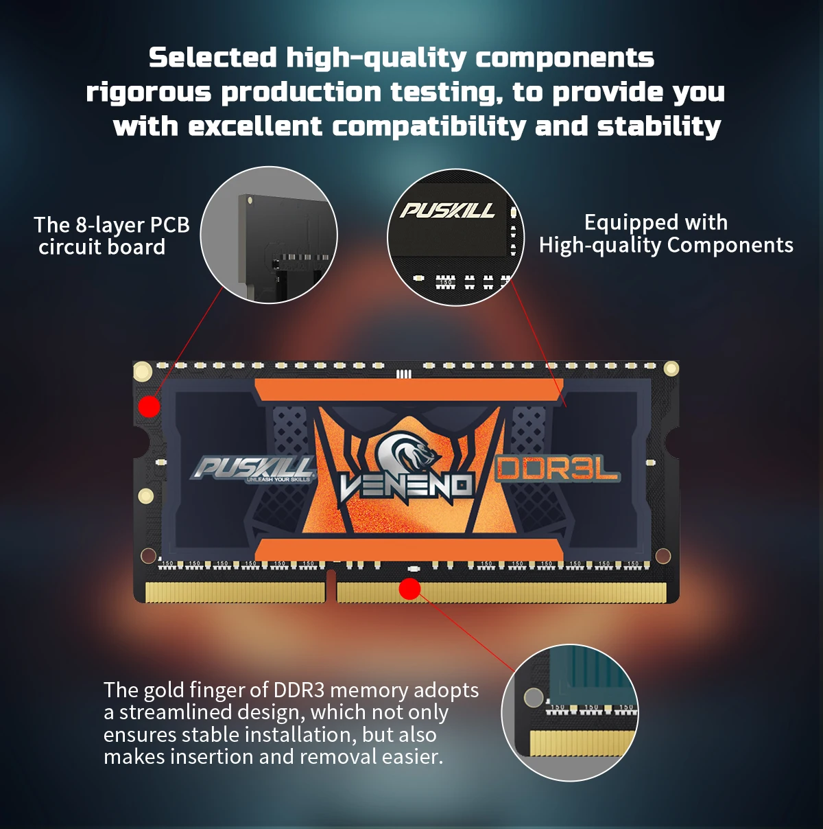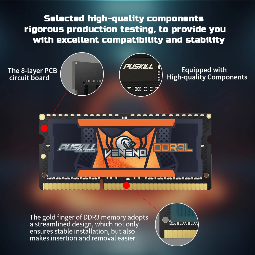 • Product: Puskill VENENO Laptop Memory 4/8gb Ddr3 1600/1333mhz Cl11/Cl9