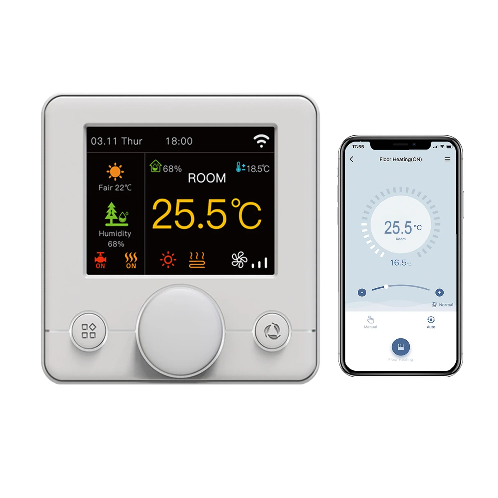 WiFi control temperature controller, for android and for WIFI control ios. Remote control by mobile application or computer (WIFI), manages the temperature of your home. Even when you are anywhere in the world at any time.